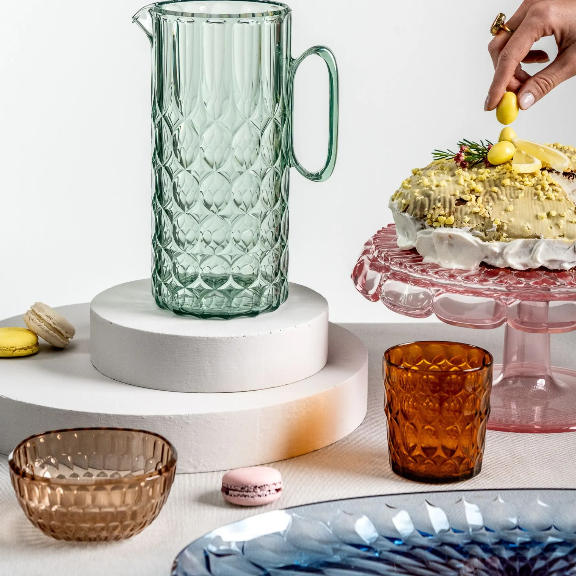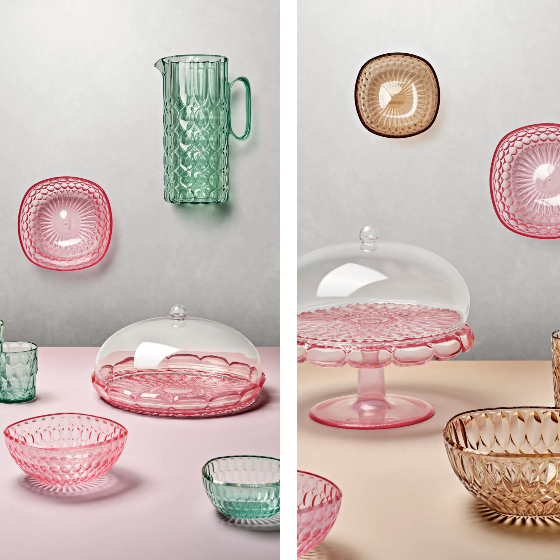 Alzata con campana realizzata nello speciale Cristallo Acrilico Bio-based* di origine biologica, un materiale organico rinnovabile, moderno e non fossile ricavato da scarti vegetali e 100% riciclabile.