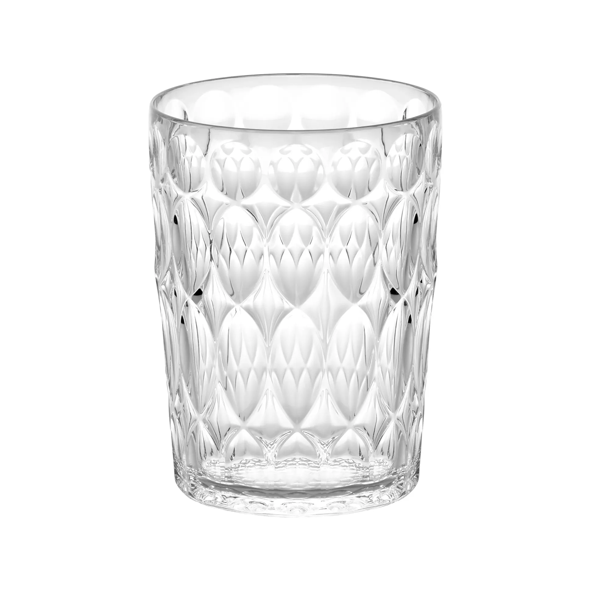 Bicchiere alto realizzato nello speciale Cristallo Acrilico Bio-based* di origine biologica, un materiale organico rinnovabile, moderno e non fossile ricavato da scarti vegetali e 100% riciclabile.