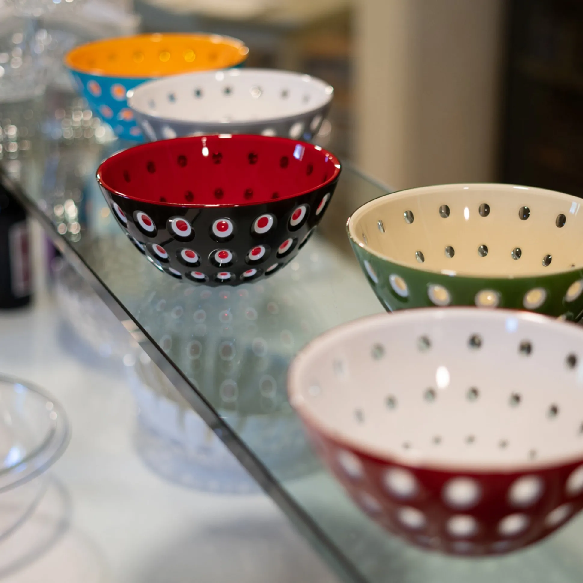 Un omaggio all’arte vetraria veneziana, Le Murrine sono capolavori di estetica, nati dalla creatività dei designer Pio & Tito Toso.