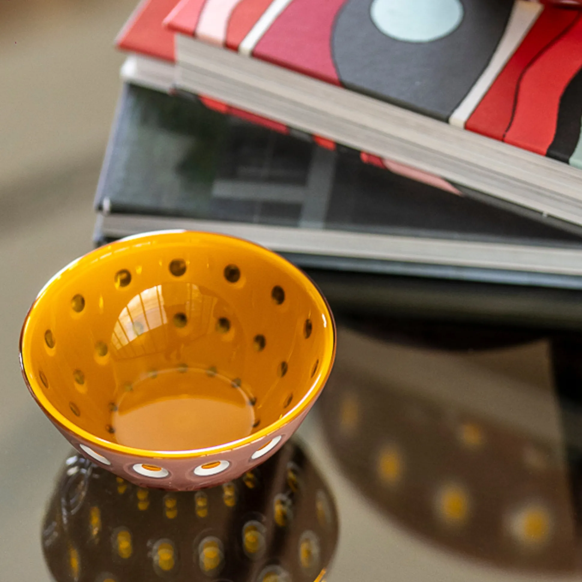 Realizzate in metacrilato di alta qualità, un materiale resistente e brillante che esalta colori e trasparenze. Ogni pezzo è unico, con vivaci motivi e sfumature cromatiche che trasformano la tavola in un’opera d’arte.