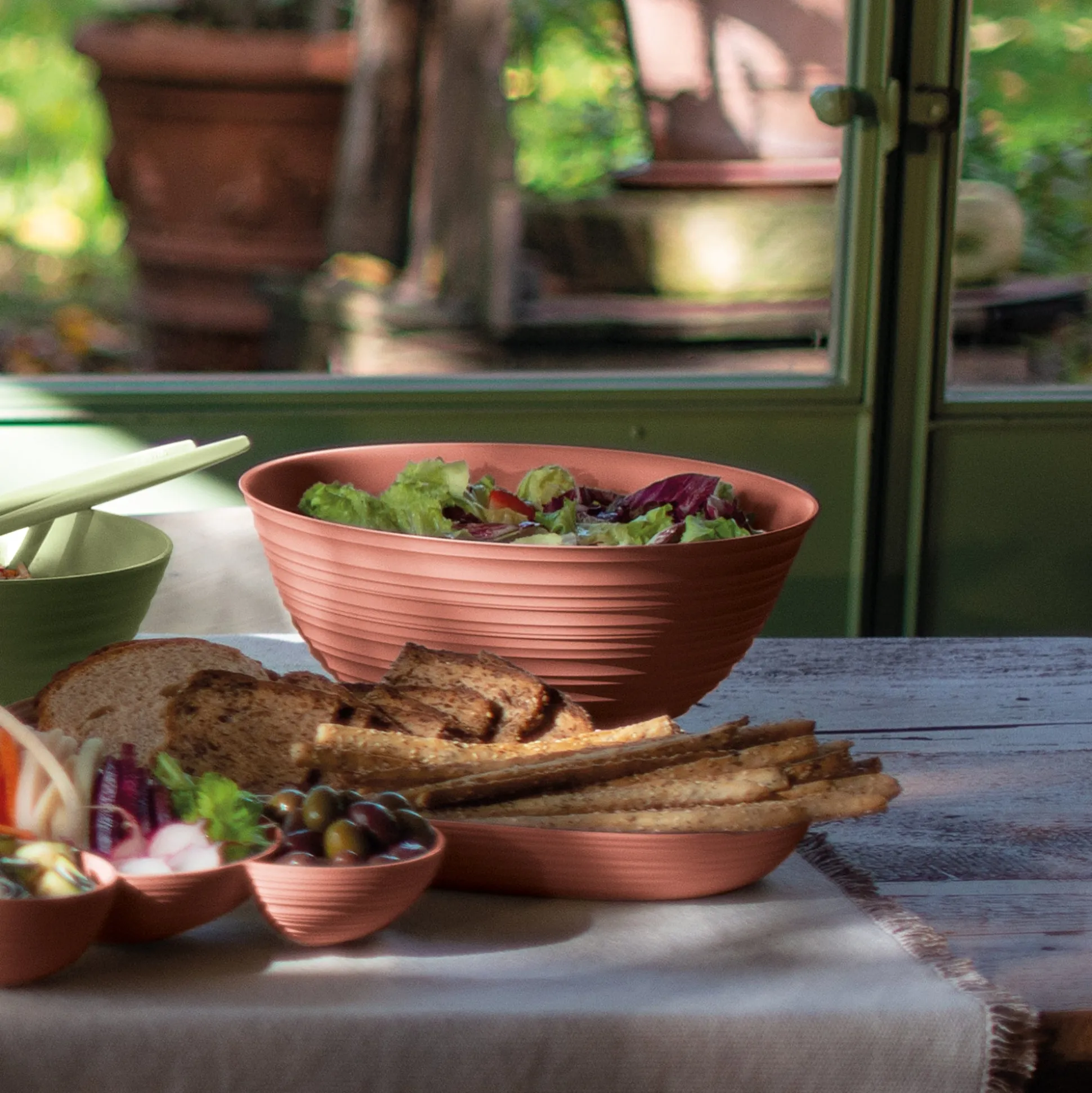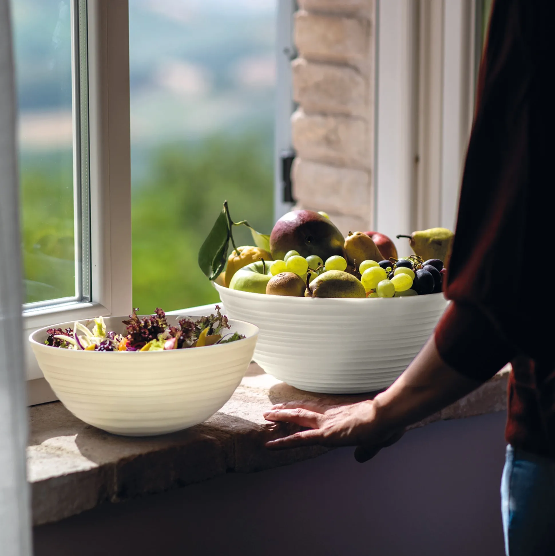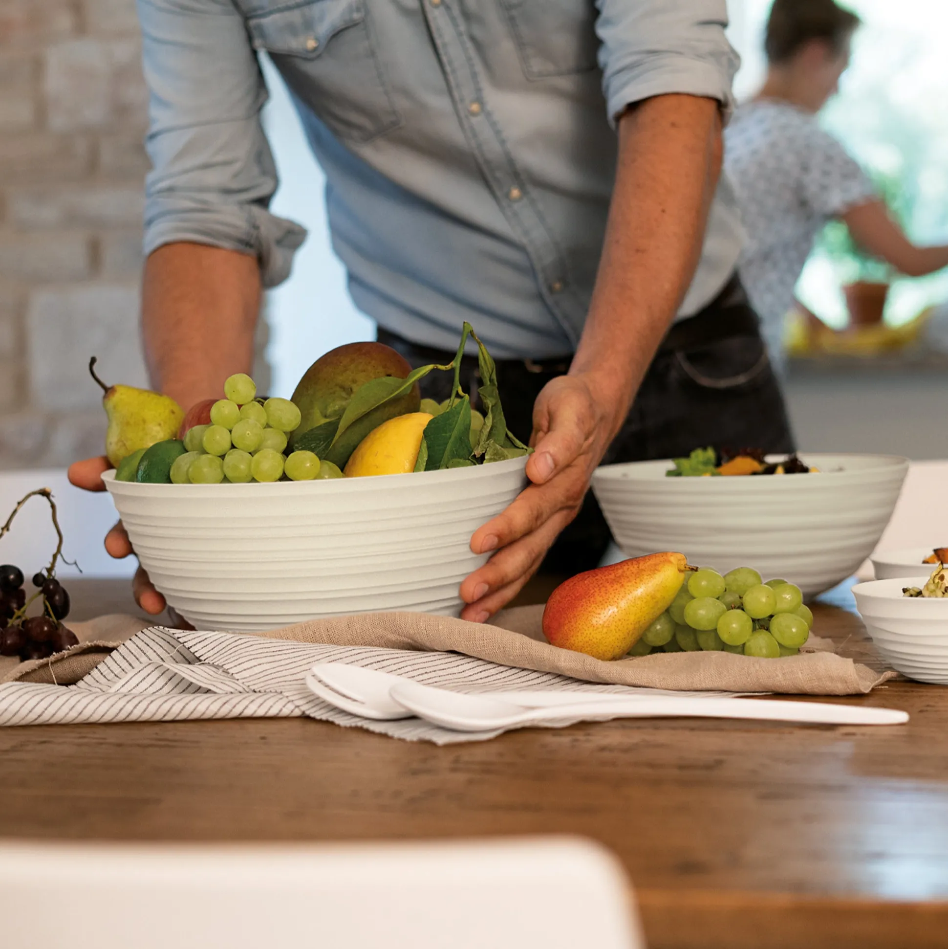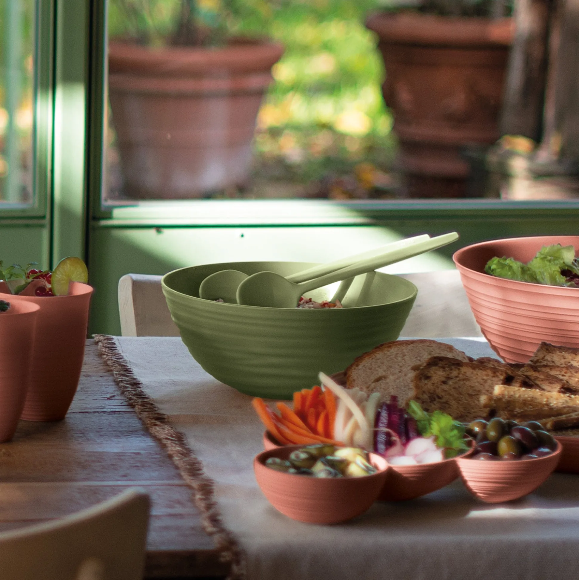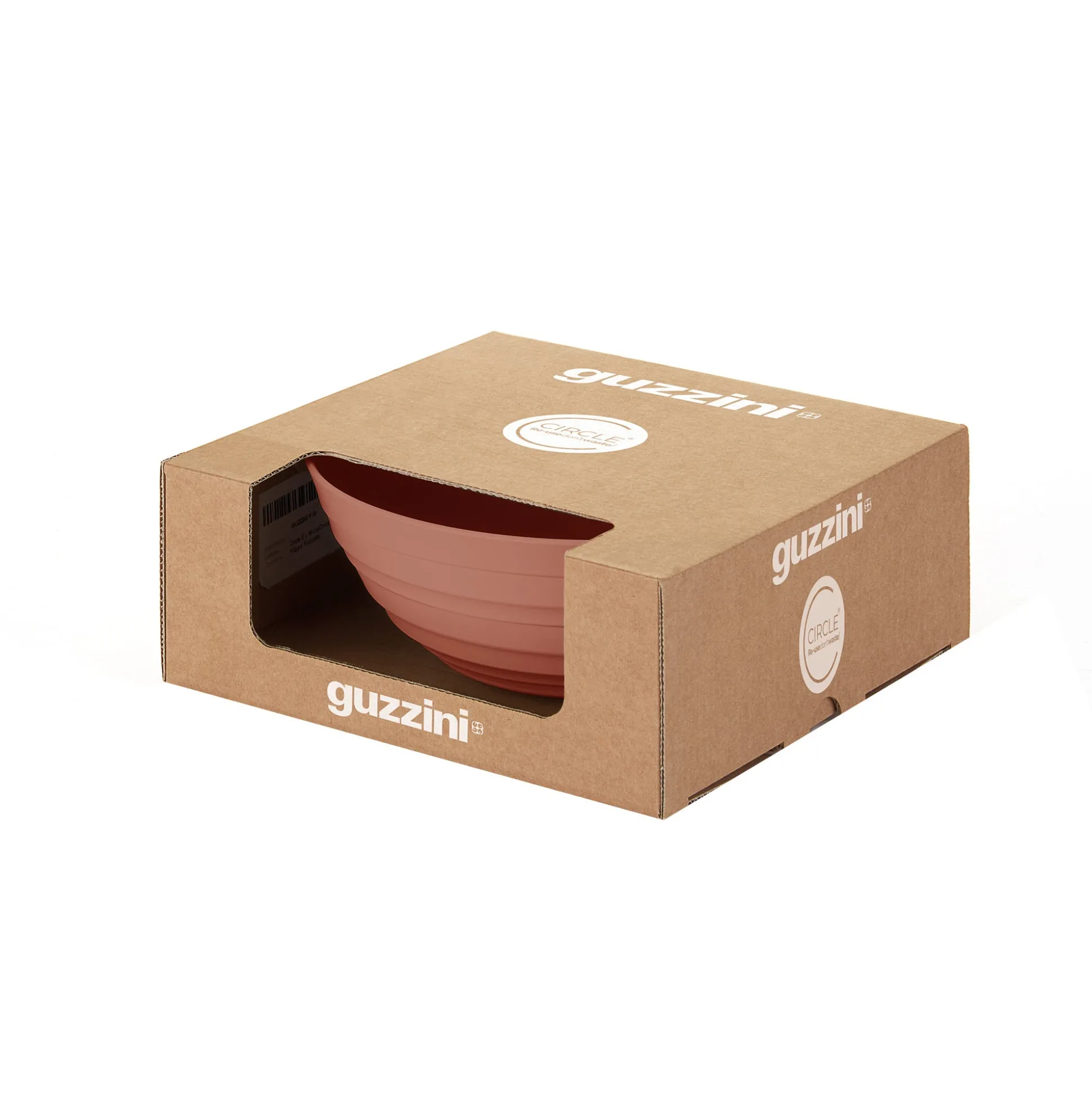 Contenitore della collezione Tierra, interamente realizzata riciclando 15,6 bottiglie d’acqua in PET da post consumo, simbolo di una rivoluzione in tema di materialità e di stile. La circolarità del segno grafico, volutamente irregolare, conferisce un aspetto handmade.