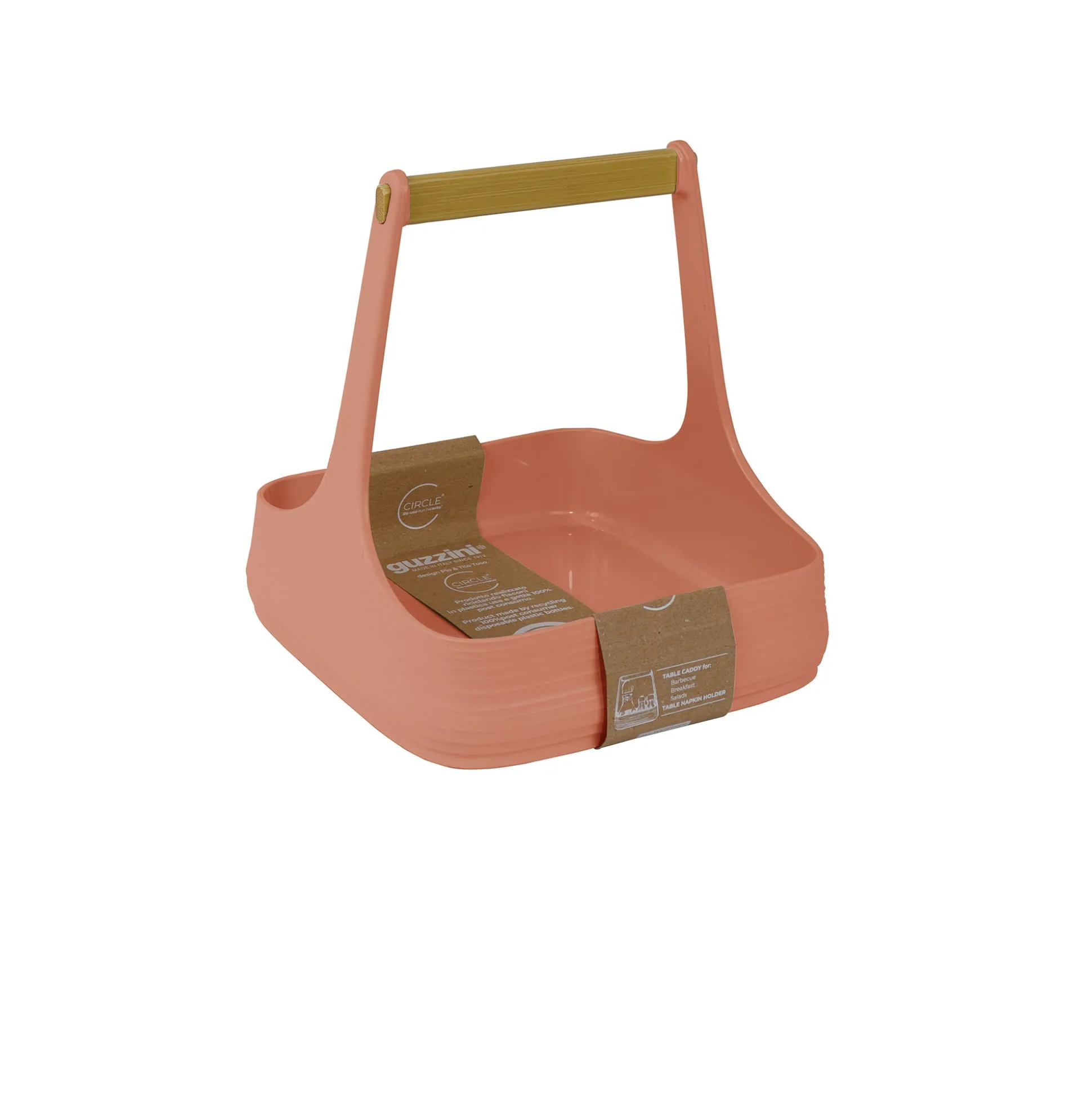 All Together, ideale per trasportare con facilità dalla cucina alla tavola i condimenti, le spezie, il miele, le marmellate ma anche per mantenere il top cucina in ordine o la tavola pulita. All Together è un ottimo alleato anche nelle cene outdoor e può fungere da portatovaglioli. L’ampia base realizzata in materiale plastico riciclato garantisce la tenuta di tutti gli oggetti contenuti all’interno mentre il manico in legno, un dettaglio prezioso che troviamo anche in altri prodotti della stessa collezione, permette un trasporto sicuro. La sua versatilità lo porterà ad essere a tavola con noi dalla colazione alla cena e anche nelle merende pomeridiane di grandi e piccini nella versione portatovaglioli.