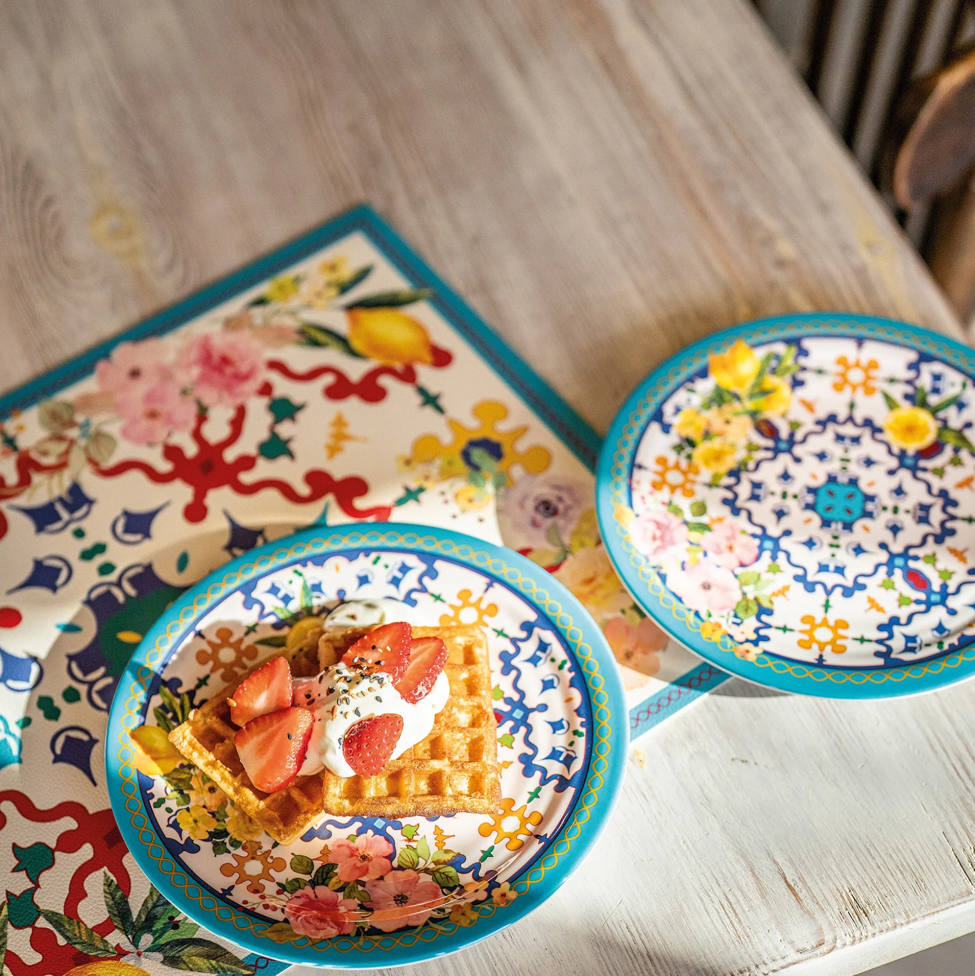 I piatti in melamina ‘’Flower&Lemon’’ evocano i profumi e i colori dei fiori primaverili e dei limoni, regalando alla tavola un tocco di freschezza e allegria. Perfetti per una festa all’aperto, un brunch informale o un’occasione speciale.