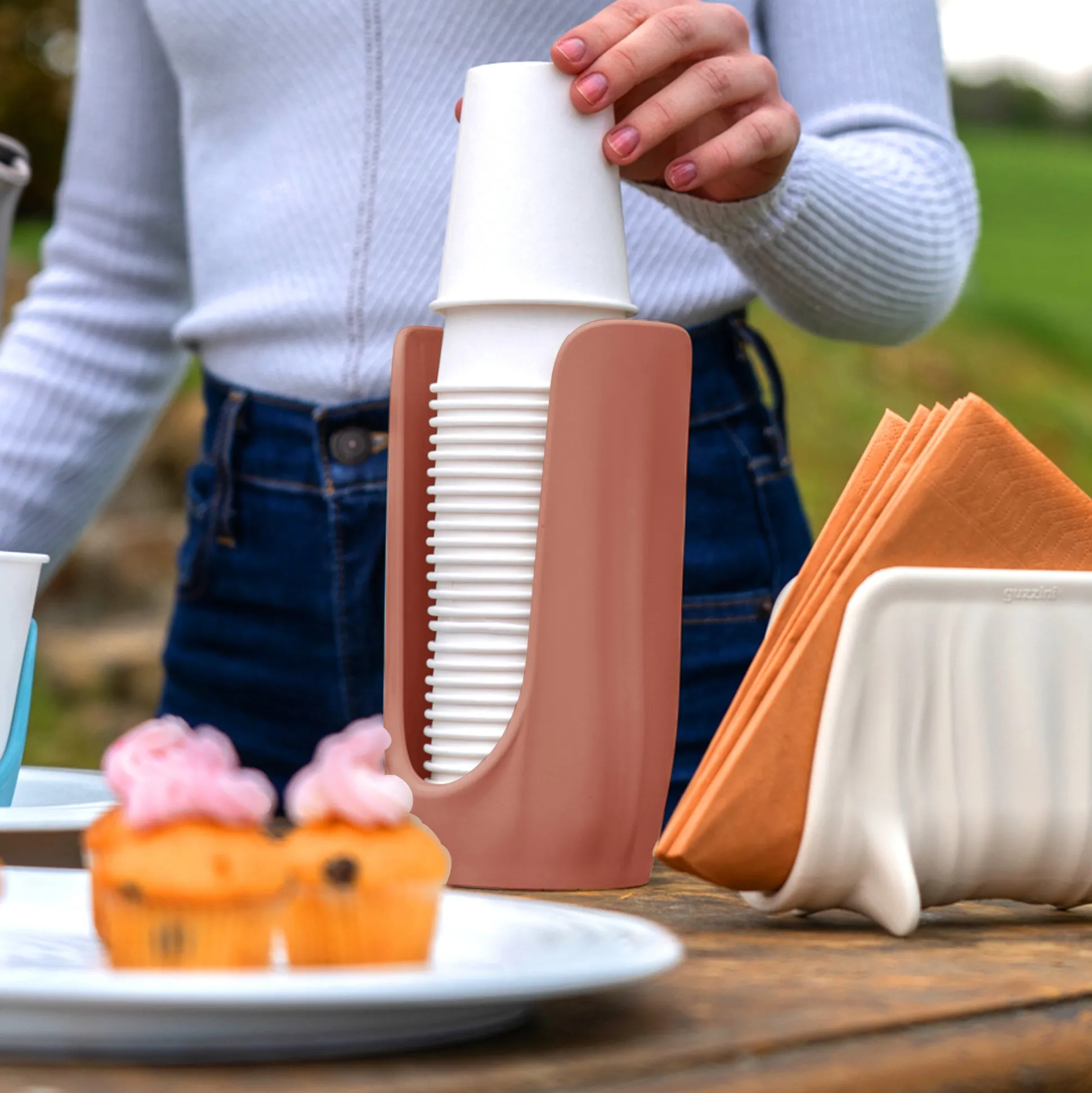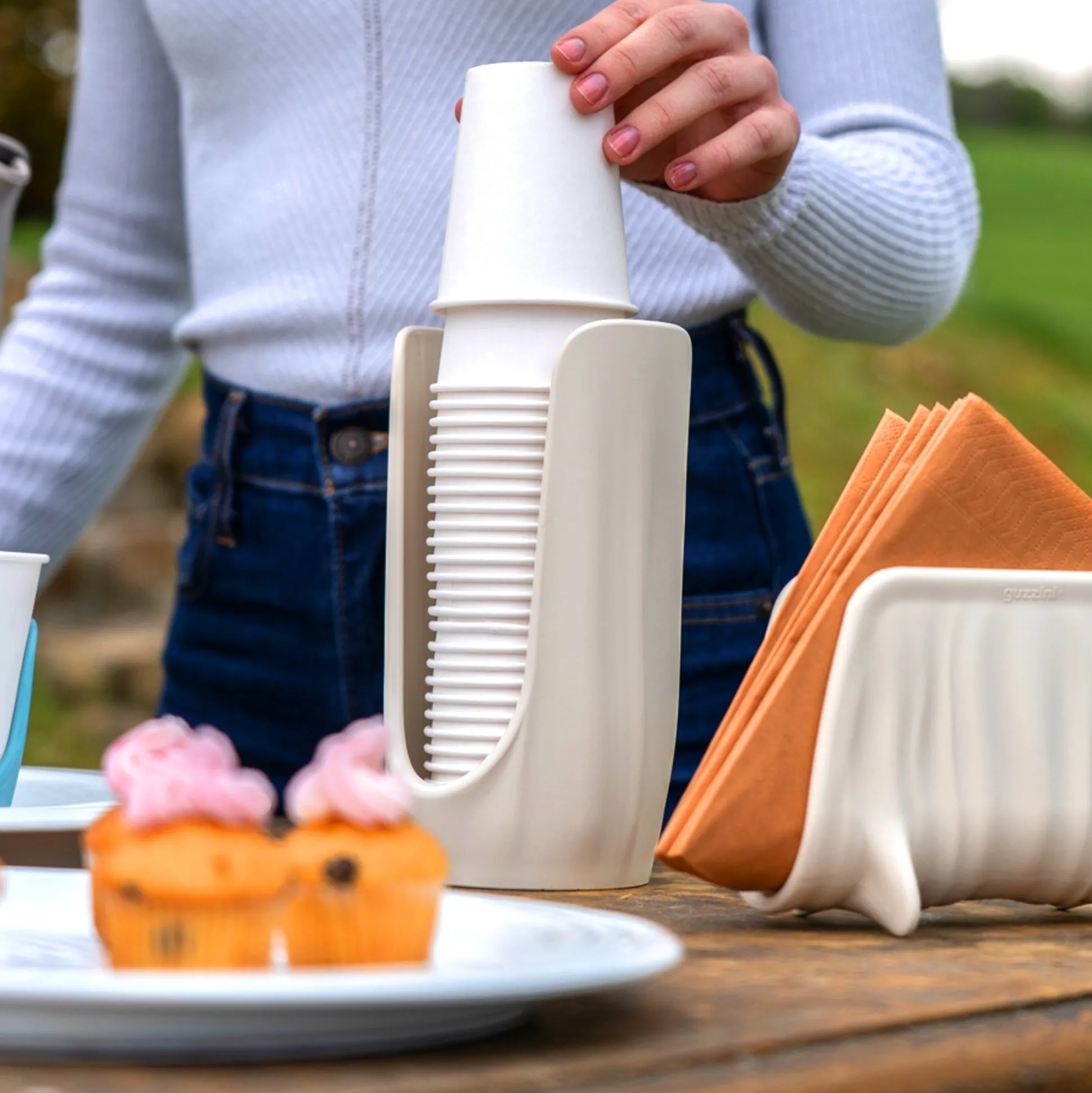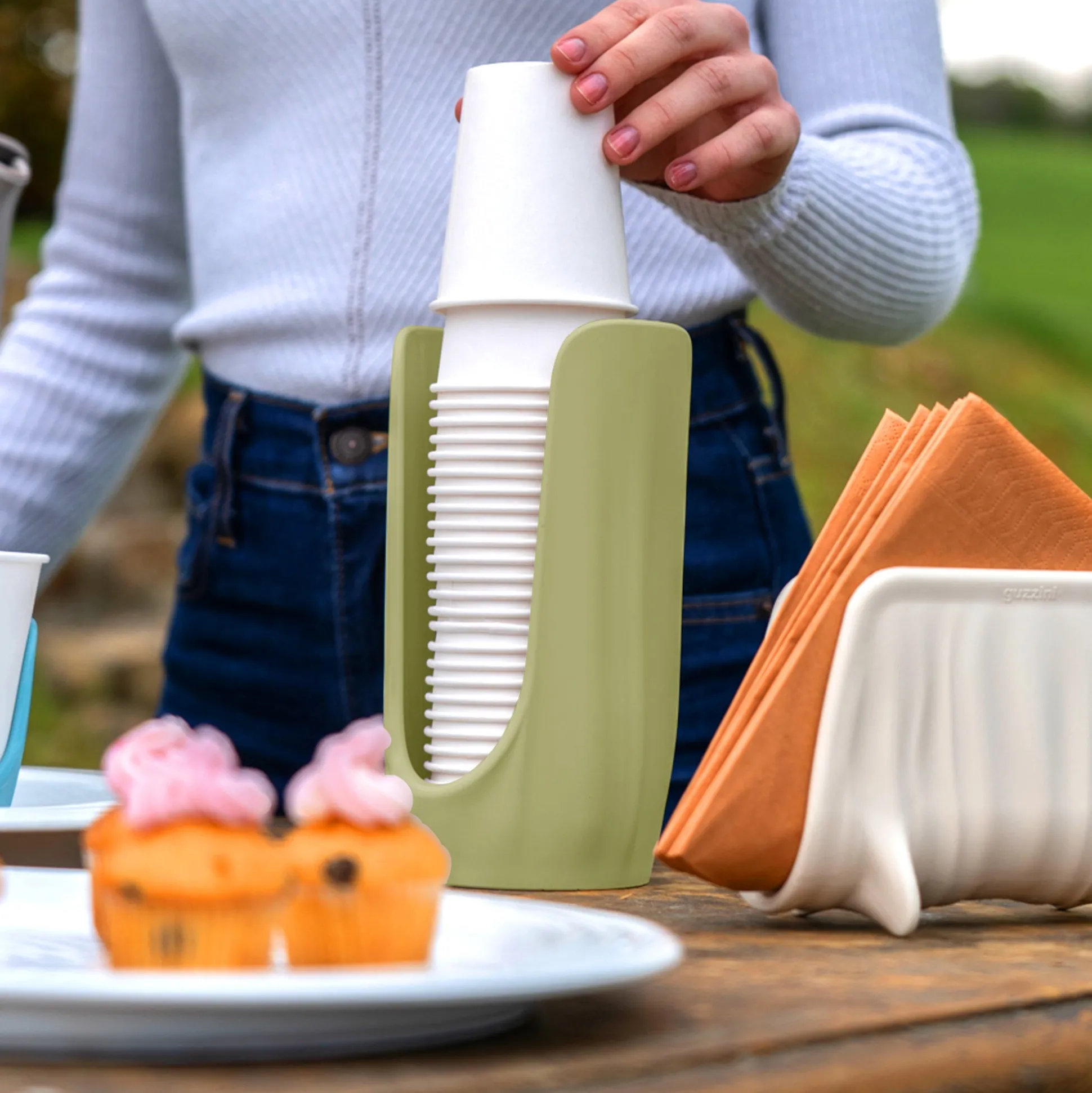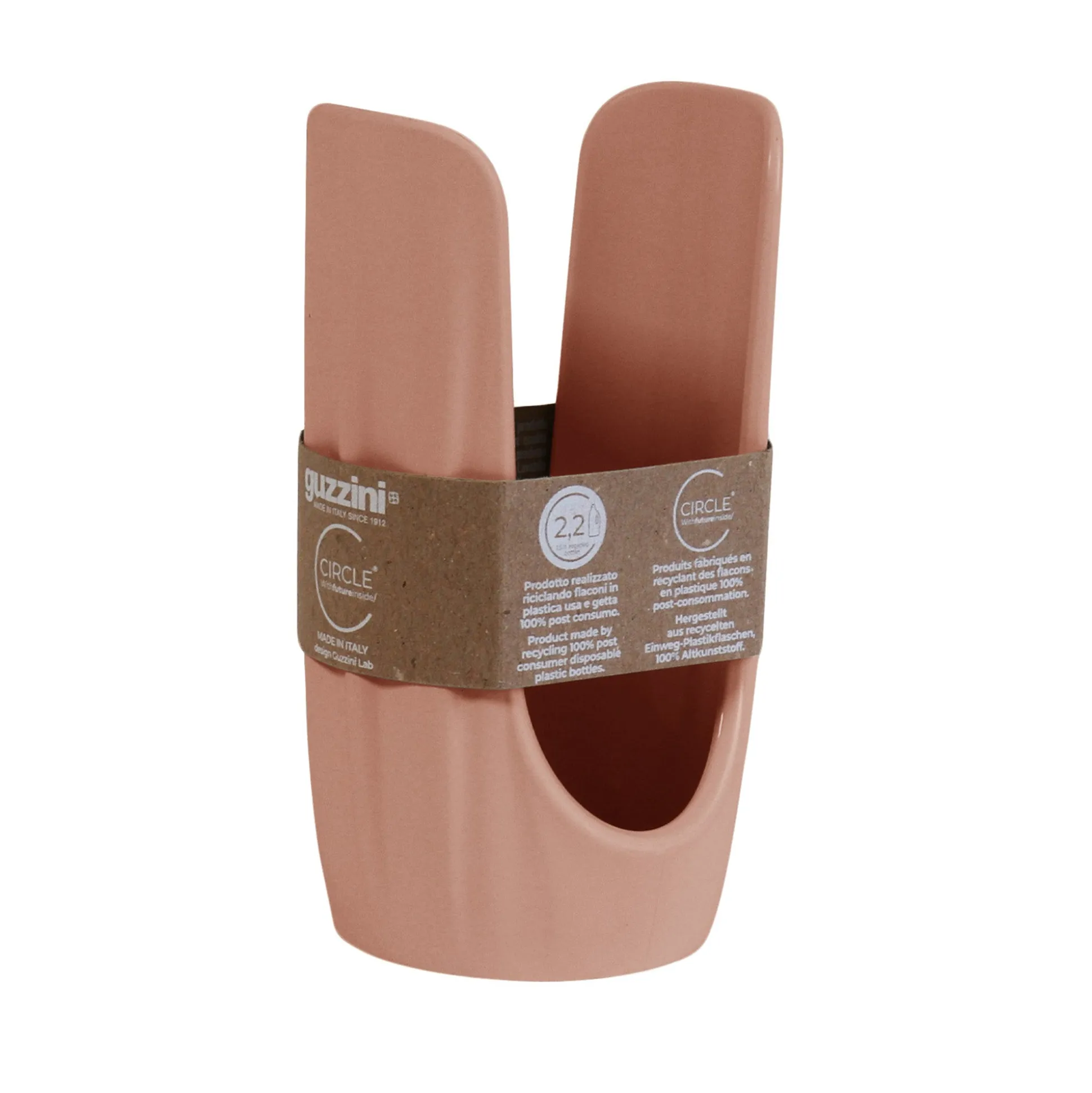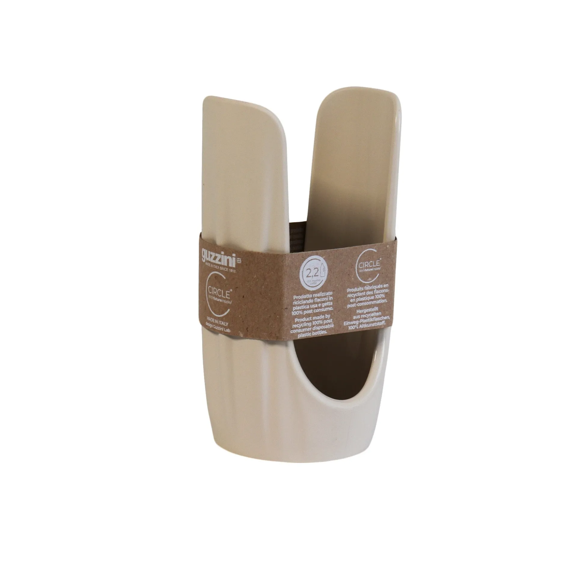 Pratico e funzionale, il portabicchieri è realizzato riciclando 2,2 flaconi in plastica usa e getta da 1,5 litri 100% post consumo. Un oggetto ideale per tenere sempre in ordine i bicchieri monouso preferibilmente eco-sostenibili.