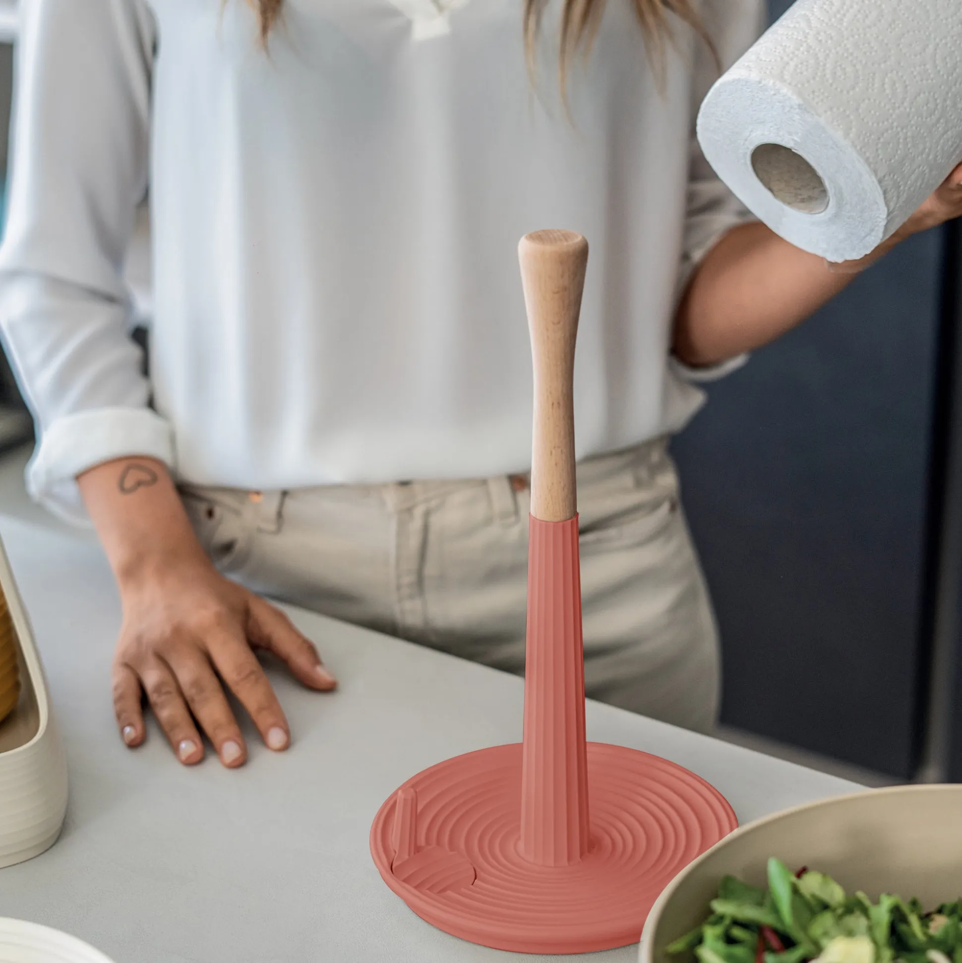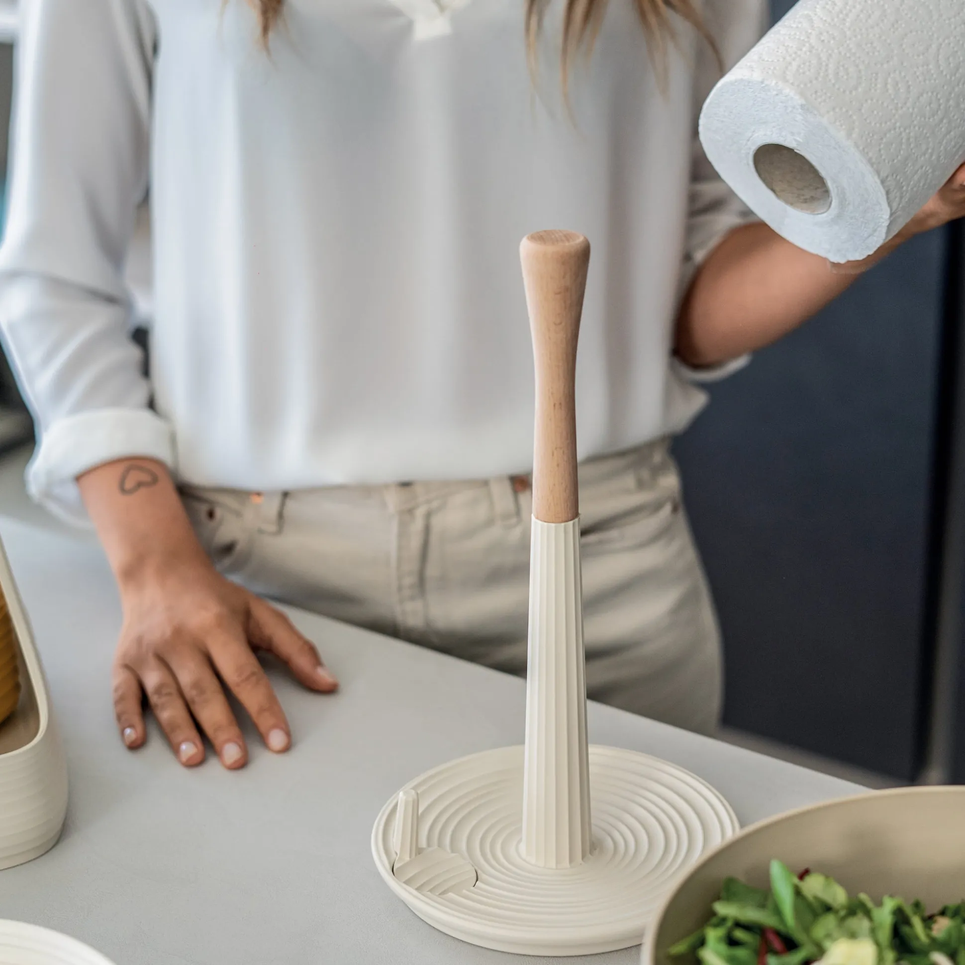 Roll&Tear è un portarotolo universale da cucina con perno ferma foglio realizzato in materiale plastico riciclato post consumo con dettaglio in legno. Roll&Tear è realizzato in uno speciale materiale antibatterico che crea una barriera protettiva sulla superficie del prodotto riducendo drasticamente la proliferazione batterica. Inoltre, è dotato di un perno ferma foglio regolabile e dunque adattabile al diametro del rotolo che garantisce uno strappo sicuro e impedisce al rotolo stesso di srotolarsi da solo. Facile da ricaricare, pratico, rapido e comodamente trasportabile, è ideale per rotoli di carta di diametro e altezze diverse.