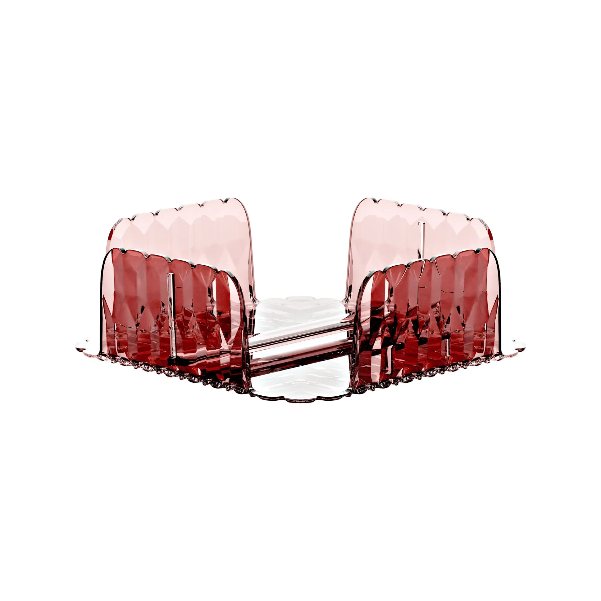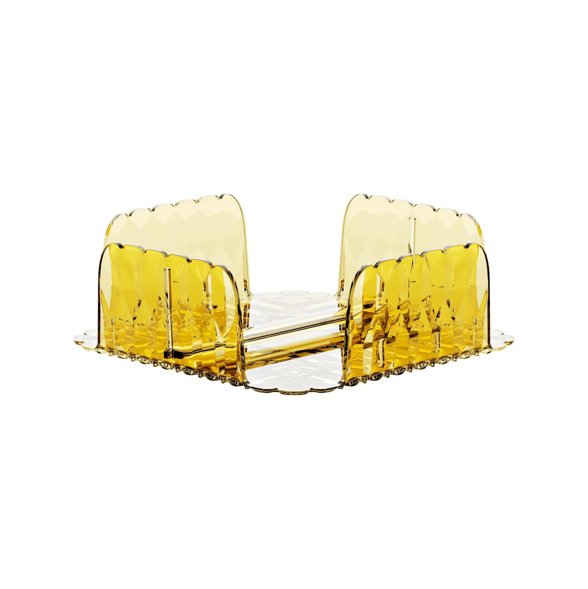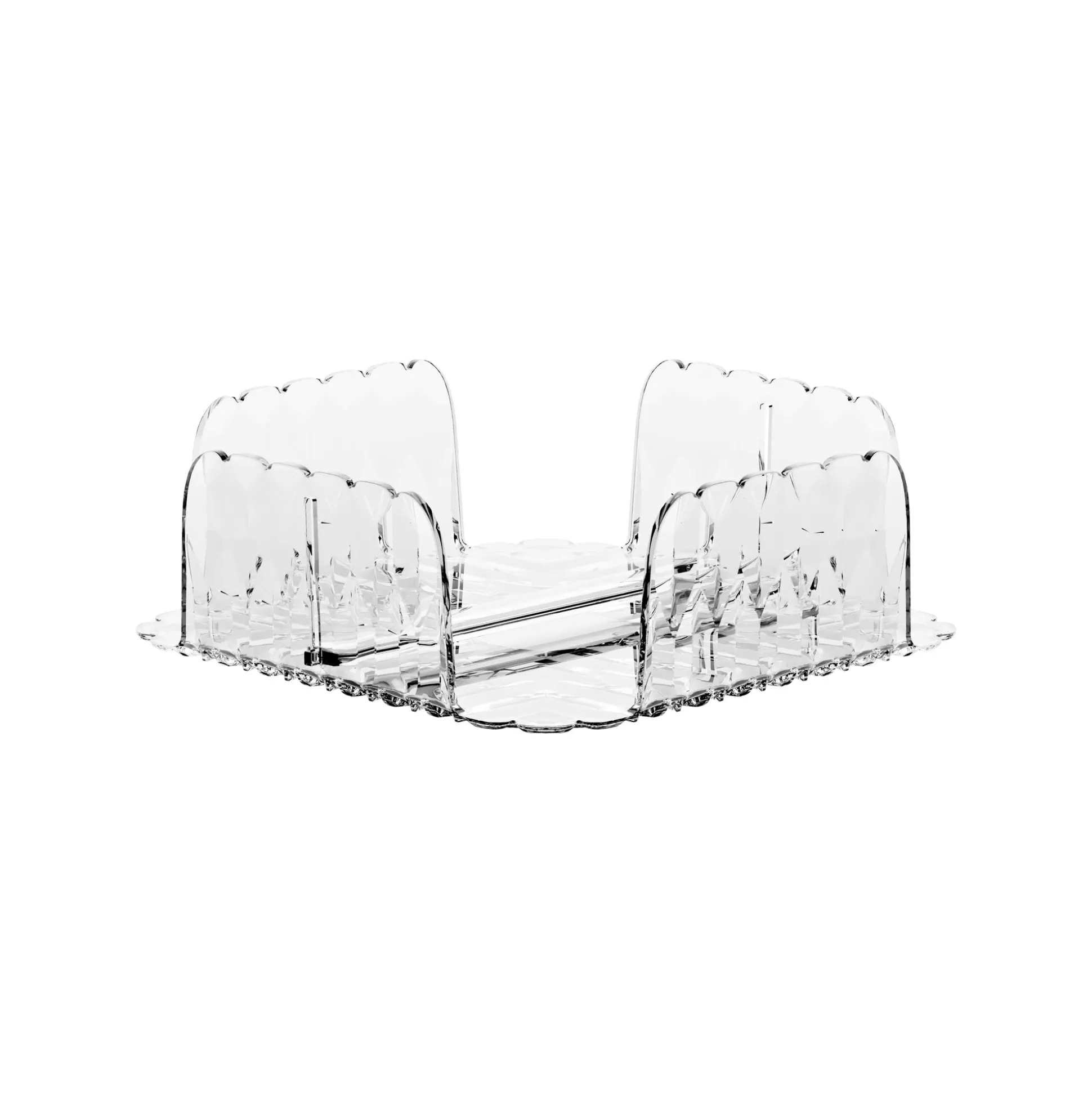 Portatovaglioli orizzontale realizzato nello speciale Cristallo Acrilico Bio-based* di origine biologica, un materiale organico rinnovabile, moderno e non fossile ricavato da scarti vegetali e 100% riciclabile.
