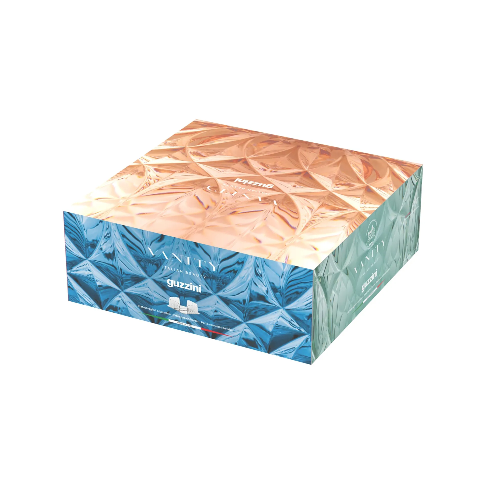 Il concetto di Vanity si esprime in una tavola dalle molteplici combinazioni di colori e di texture, proposte in tre mood cromatici: Aria, Acqua e Terra.
