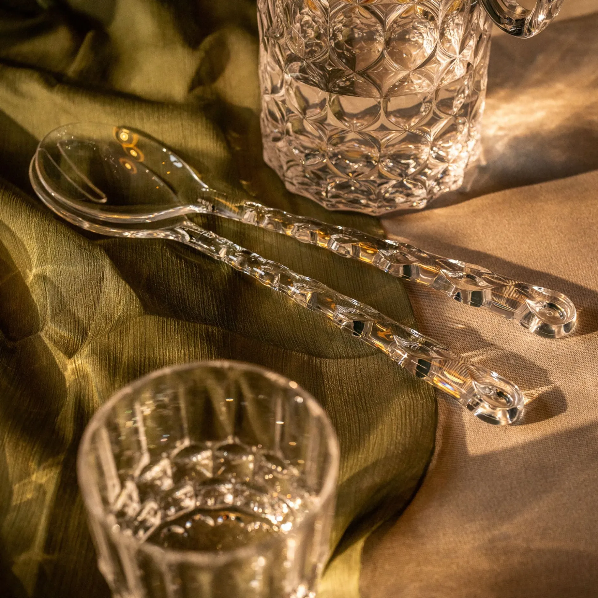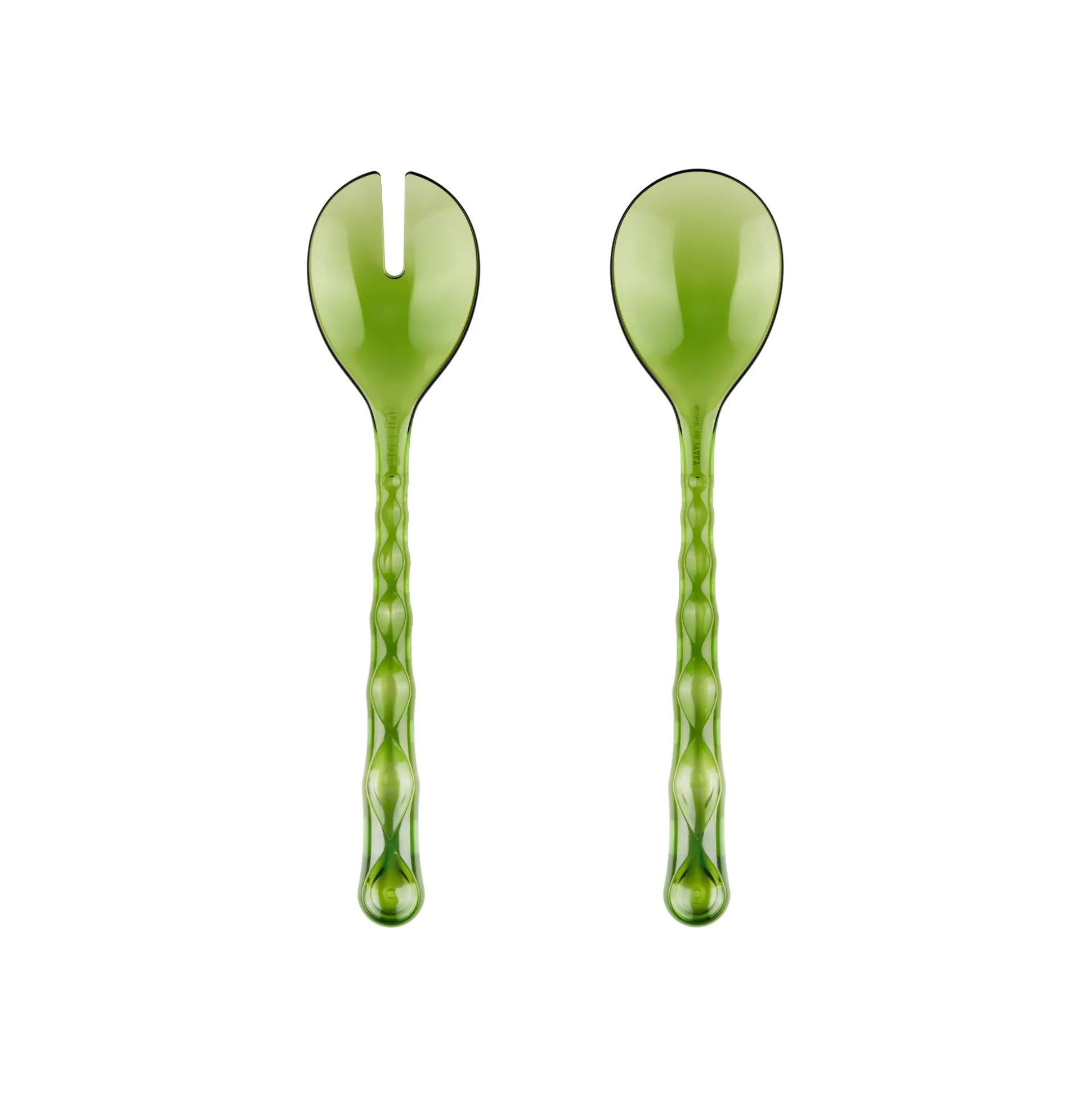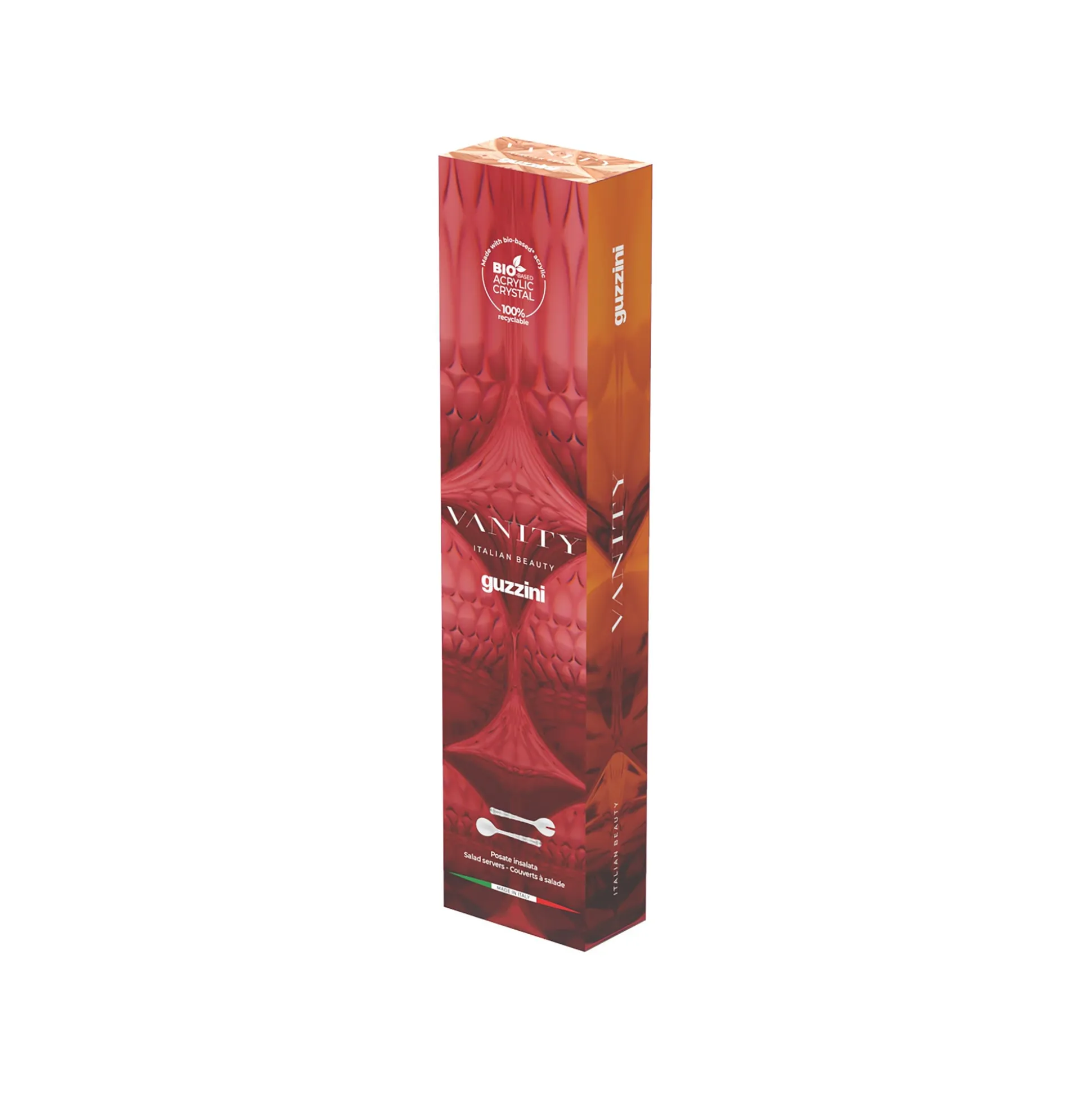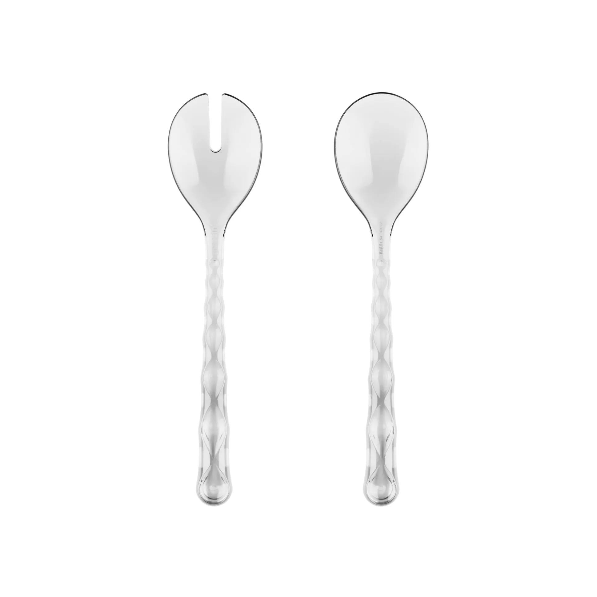 Posate insalata eleganti e funzionali, realizzate nello speciale Cristallo Acrilico Bio-based* di origine biologica, un materiale organico rinnovabile, moderno e non fossile ricavato da scarti vegetali e 100% riciclabile.