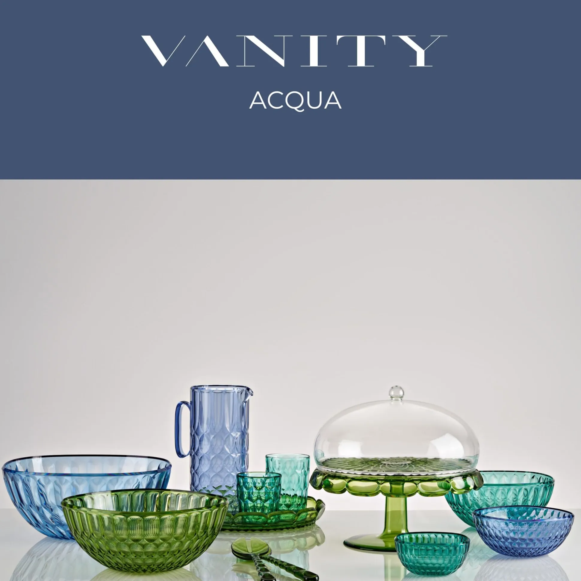 Il concetto di Vanity si esprime in una tavola dalle molteplici combinazioni di colori e di texture, proposte in tre mood cromatici: Aria, Acqua e Terra.