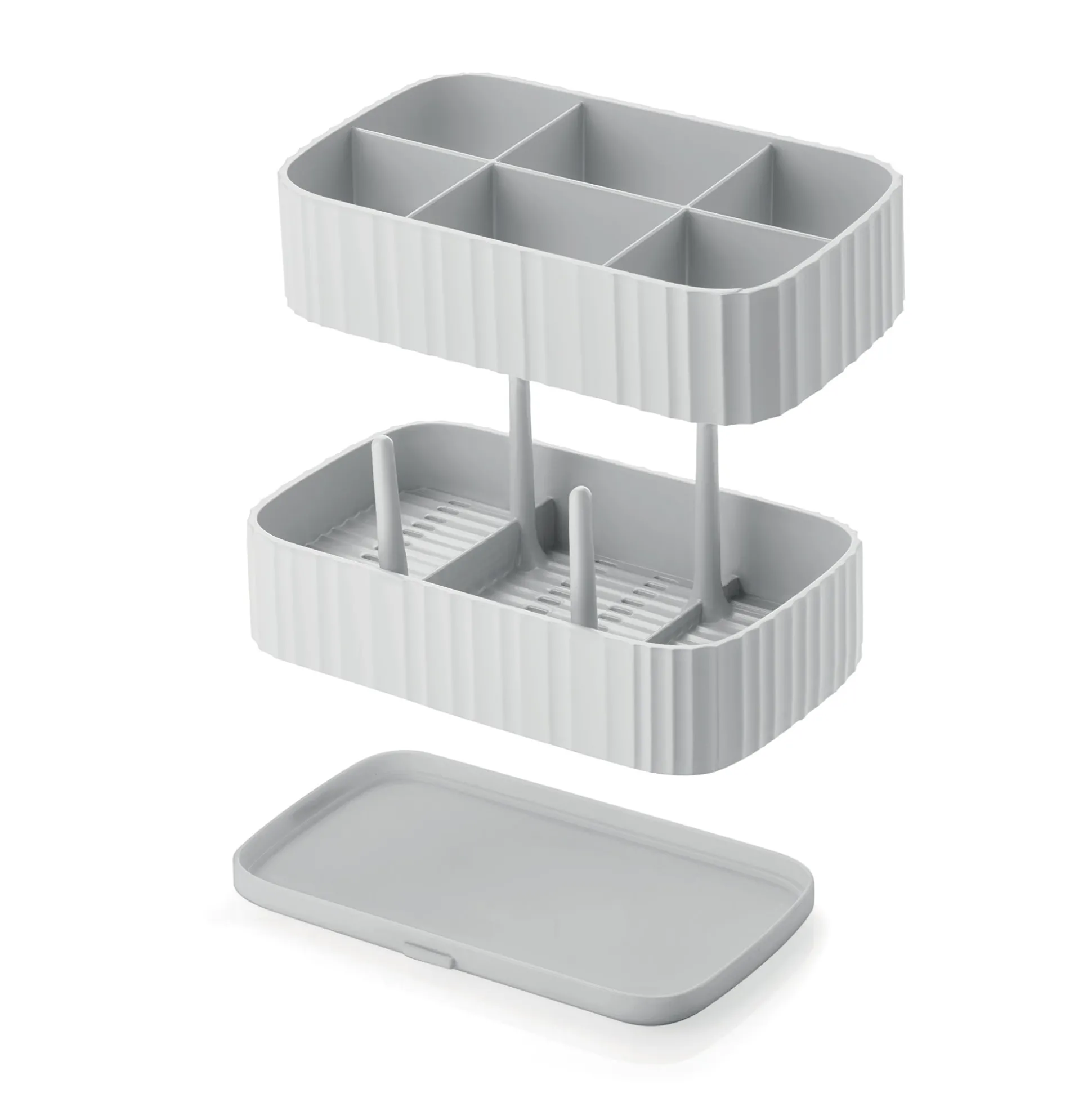 Pratico e compatto scolaposate a sei scomparti e due differenti altezze per aiutarti a separare le diverse posate. Il piattino integrato raccoglie l’acqua in eccesso. Facile da pulire, lavabile in lavastoviglie e completamente smontabile in tre pezzi.