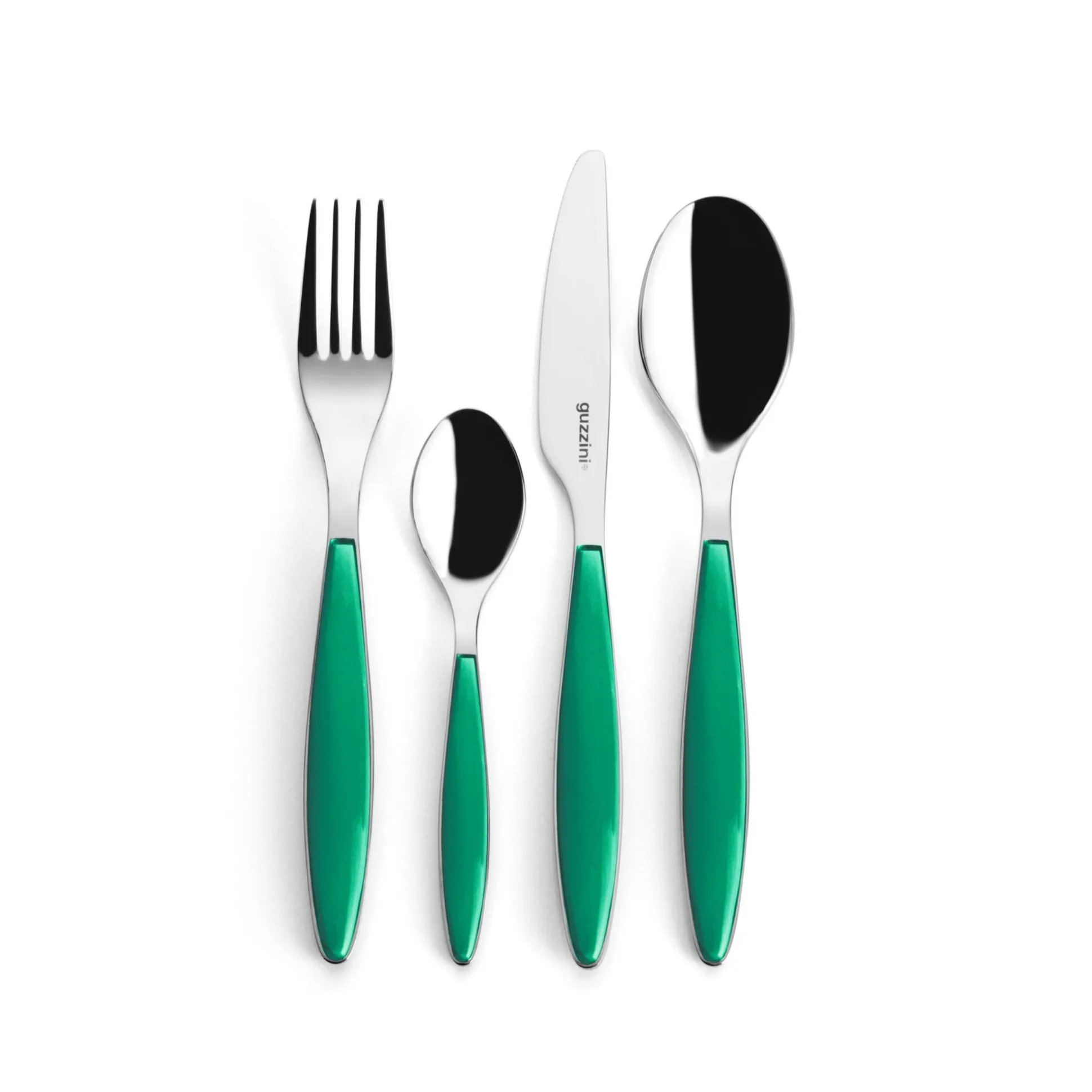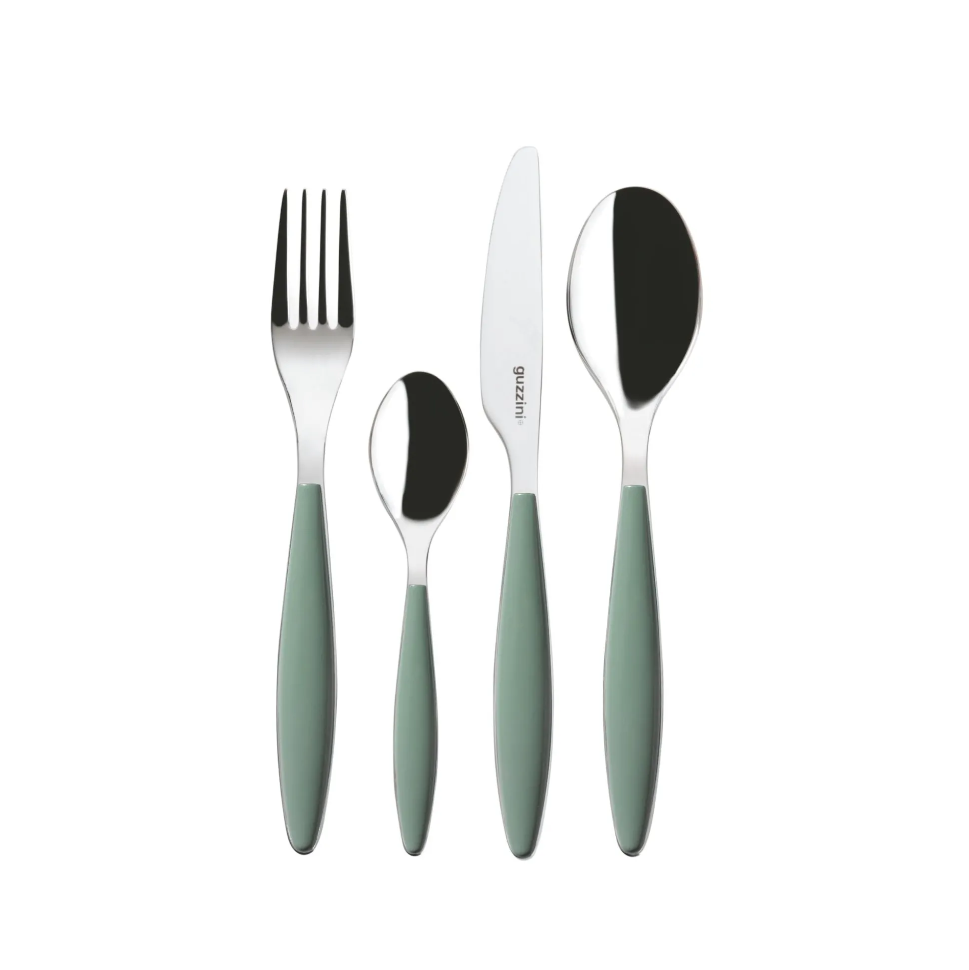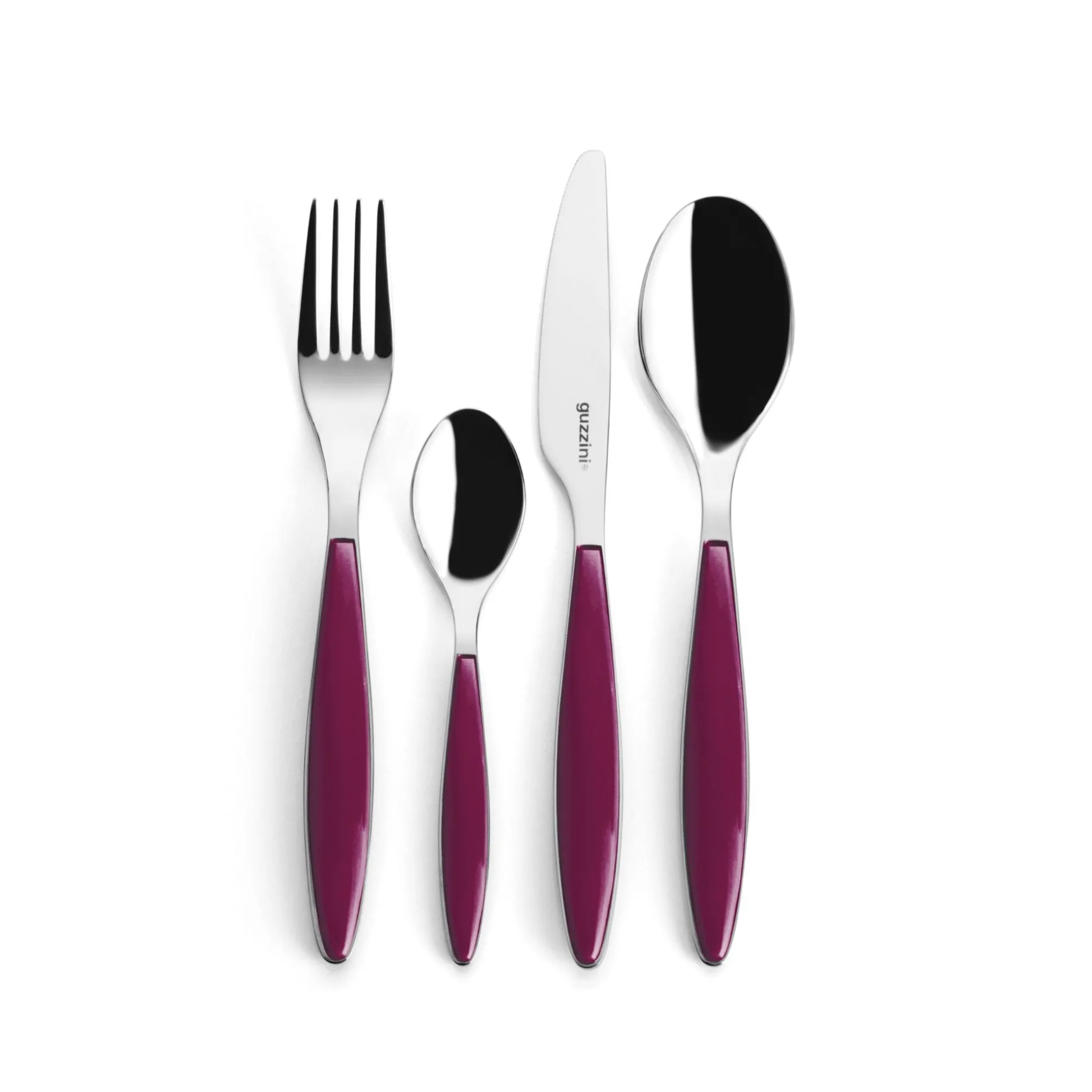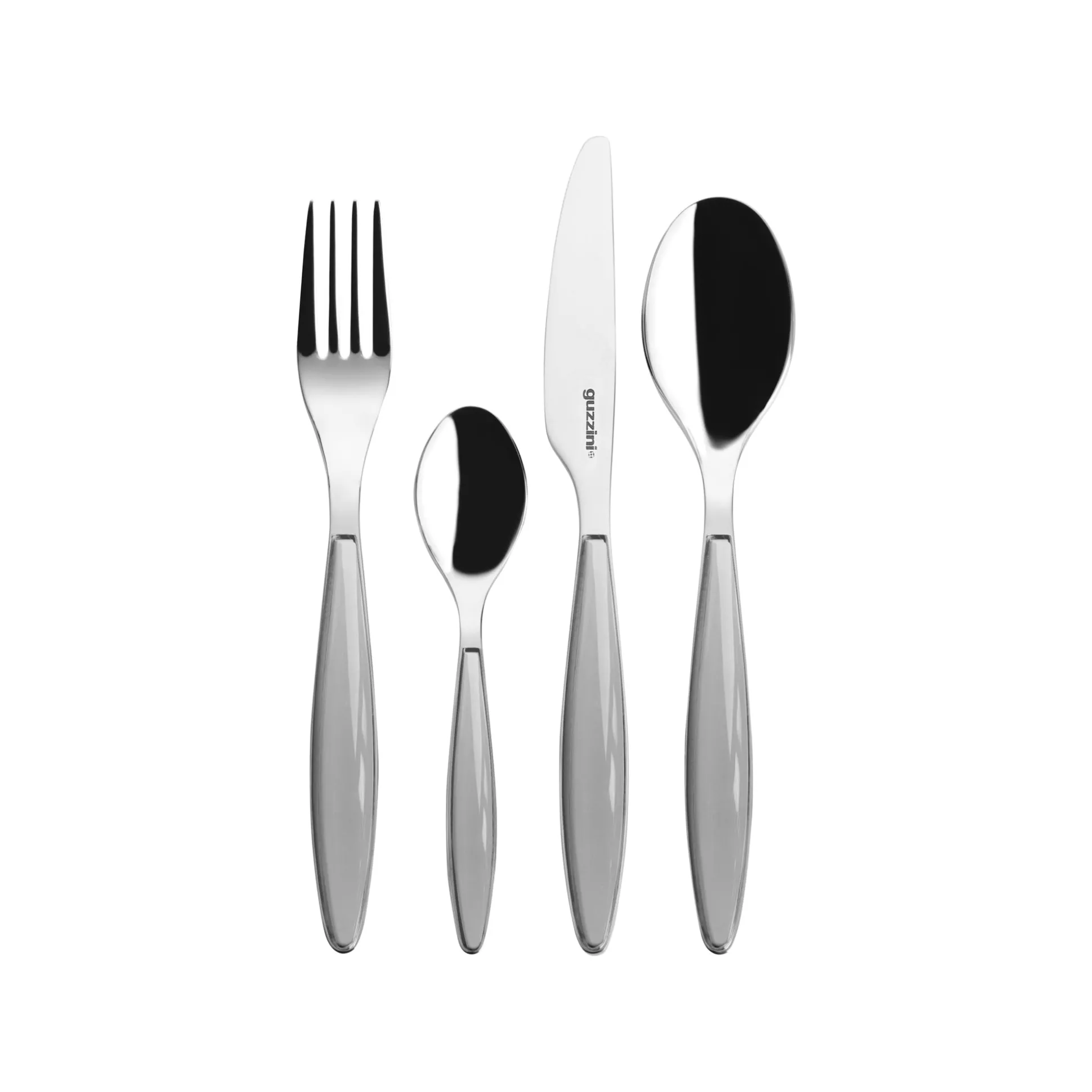 Il perfetto connubio fra acciaio e materiale plastico viene rappresentato in questo set di posate. L’acciaio inox, di altissima qualità, percorre tutta la lunghezza della posata sul cui manico vengono applicati i preziosi elementi in plastica bicolore.