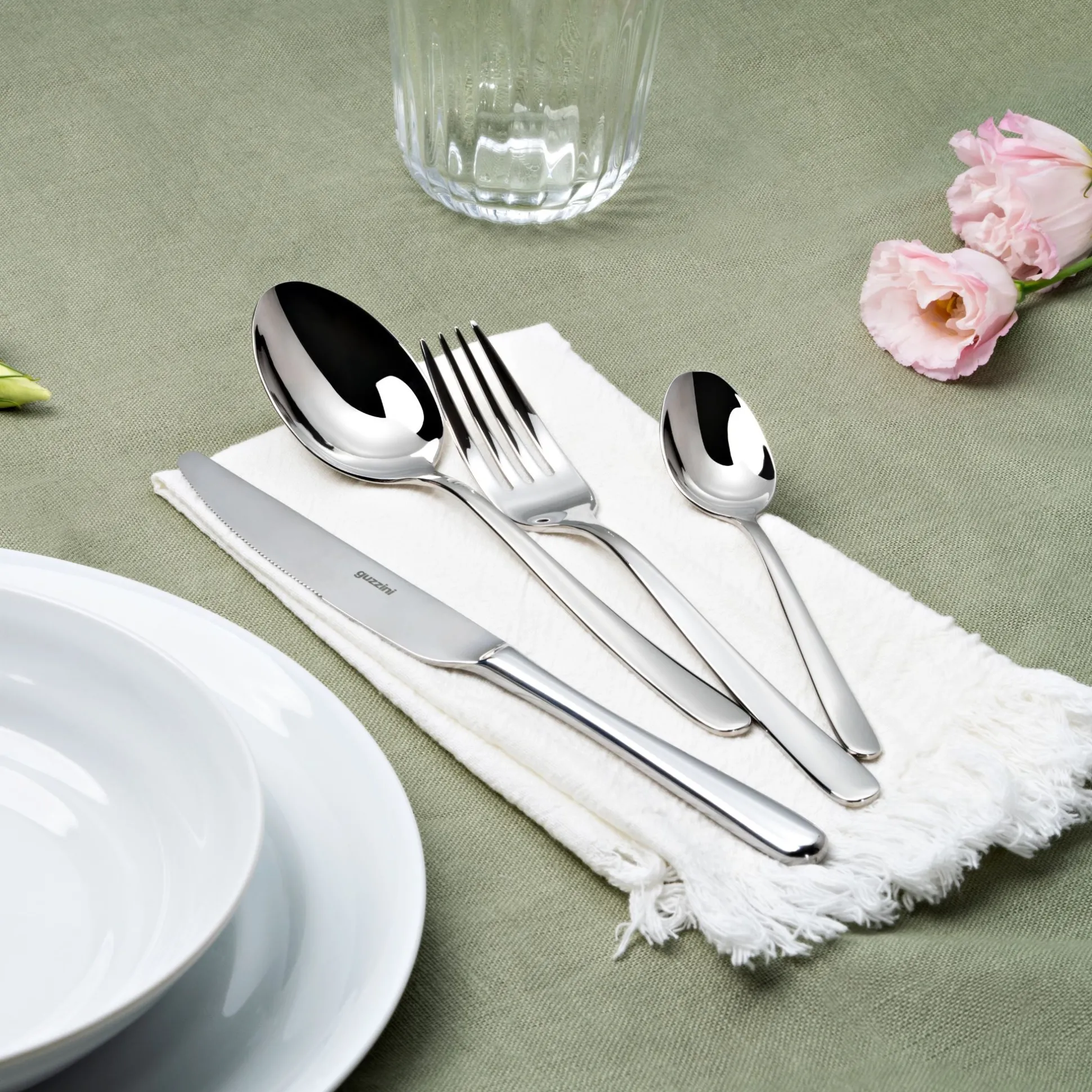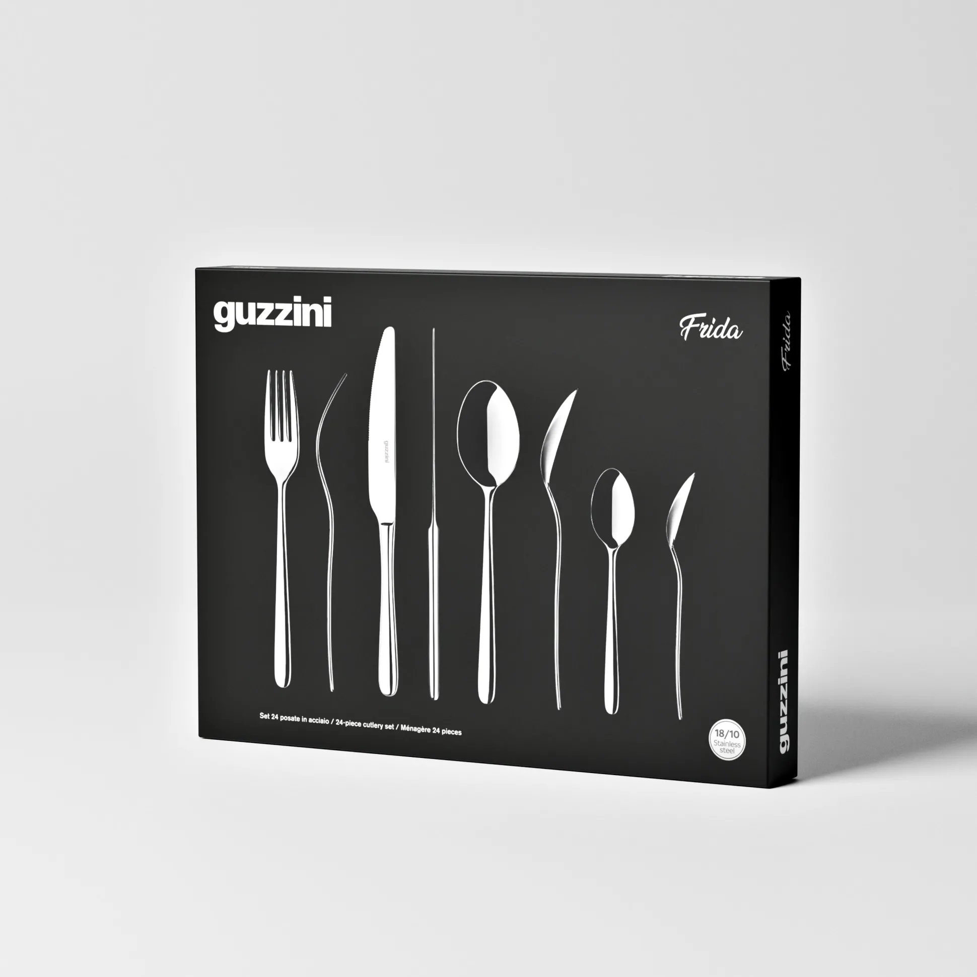 Frida, posateria in acciaio inox 18/10 con finitura lucida dalla forma armoniosa e dal design a goccia stretta, è ideale per le mise en place più informali.
