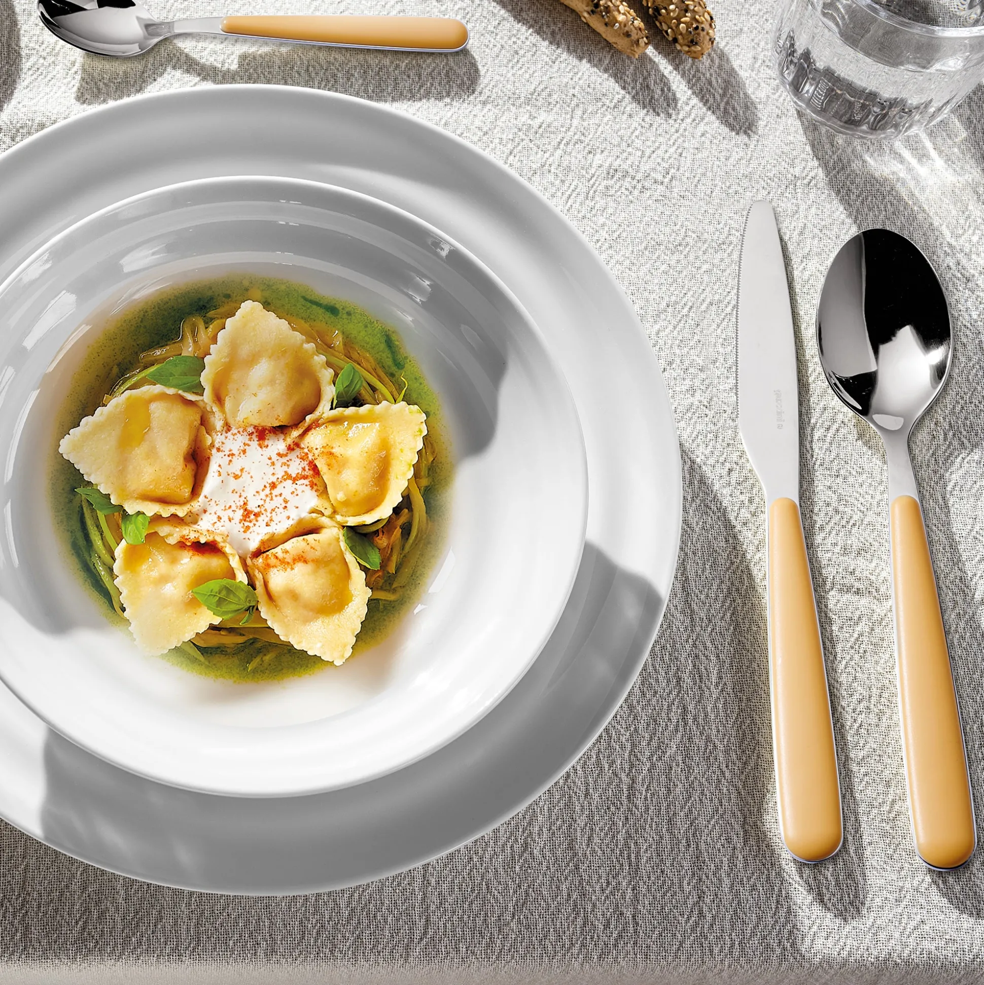 Posate colorate, allegre e accattivanti per un tocco di creatività nella tavola di tutti i giorni. L’acciaio inox percorre tutta la lunghezza della posata, creando il perfetto connubio fra acciaio e materiale plastico.