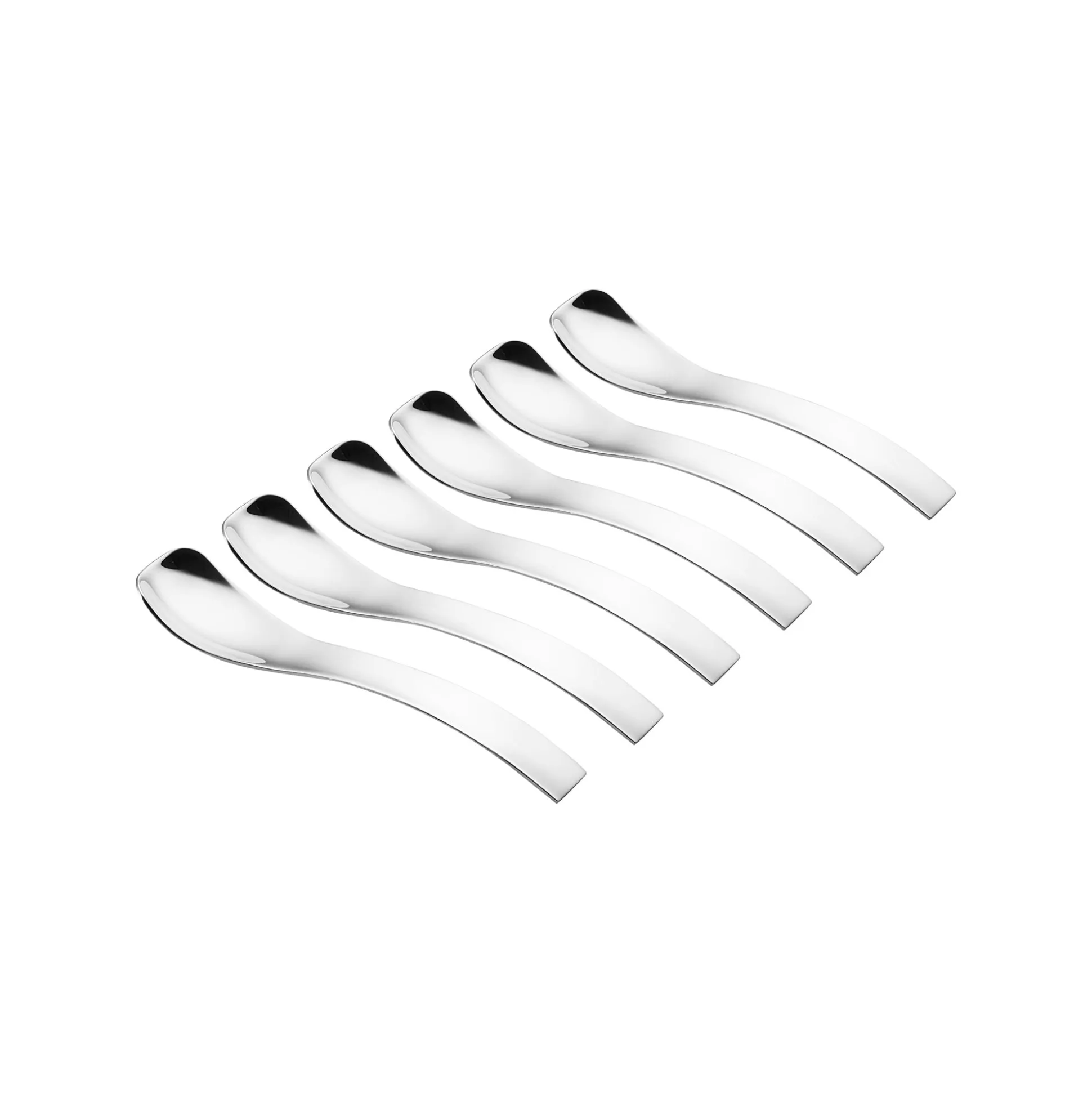 Set da sei cucchiaini in acciaio inox ideali per gelati e macedonie. Lo spessore dell’acciaio utilizzato garantisce alla posata un’elevata resistenza.