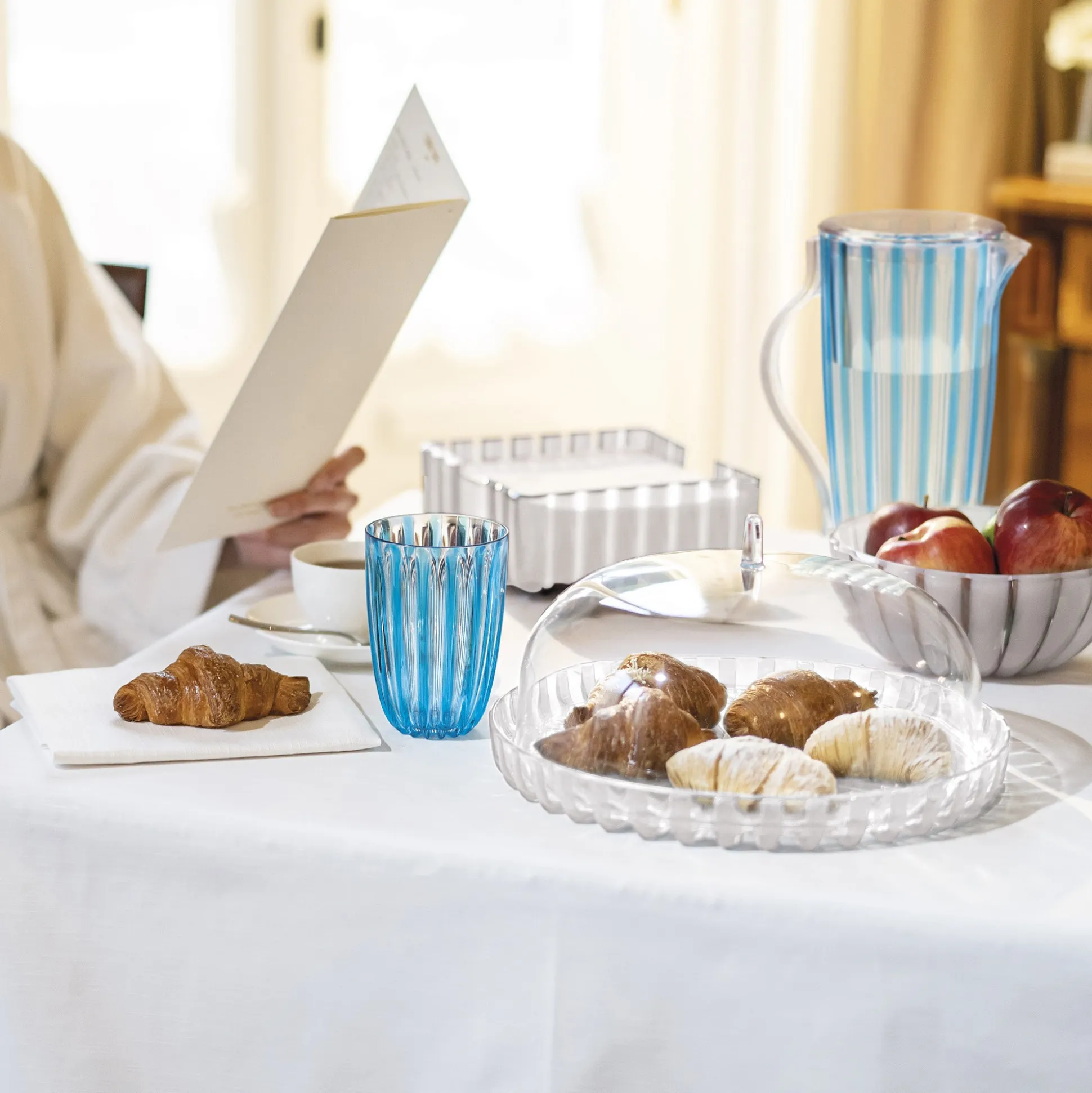 Elegante set composto da vassoio con campana di protezione realizzato in materiael bio-based.