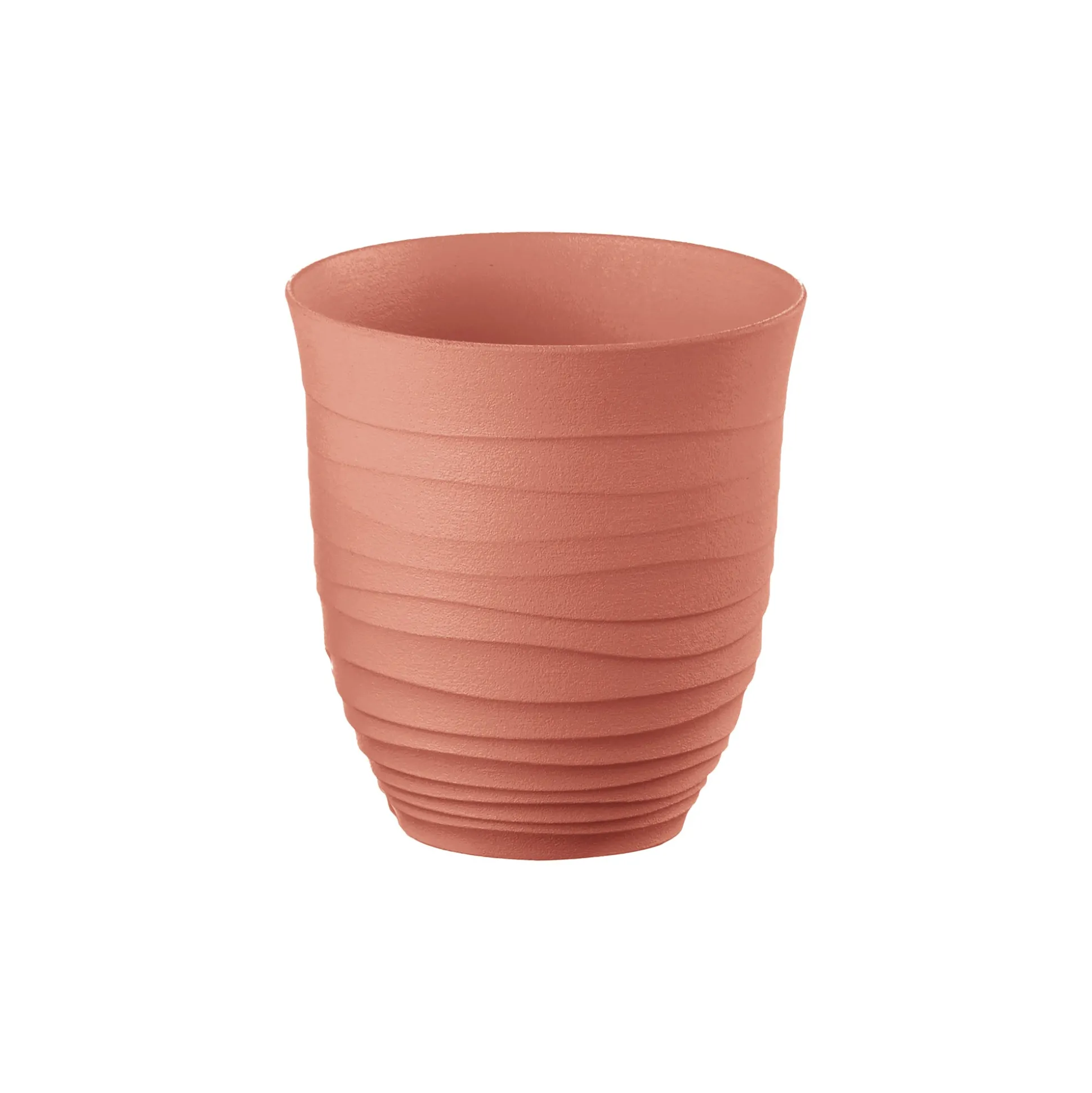 Bicchiere basso, elegante e funzionale. Realizzato riciclando 3,3 bottiglie d’acqua usa e getta 100% post consumo.
