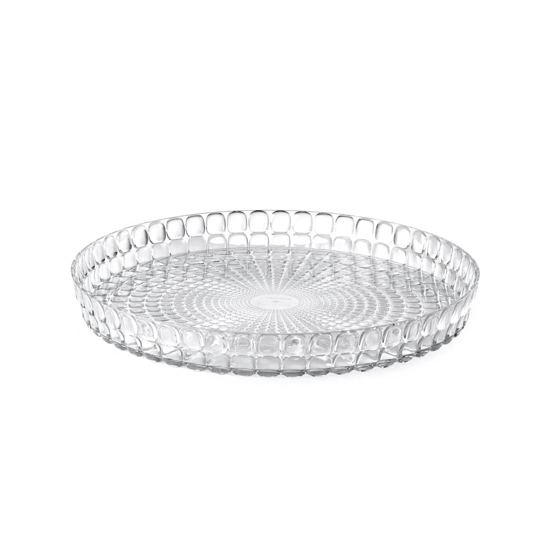 Vassoio circolare in pregiato materiale plastico trasparente e colorato dagli effetti scintillanti. Anche questo pezzo della collezione Tiffany è perfetto per l’outdoor ma anche per impreziosire le tavole più formali.