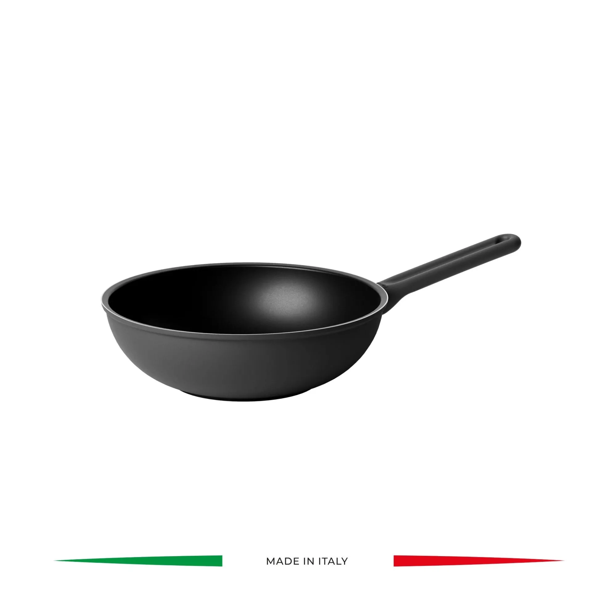 - Caratteristiche di primo livello, come il corpo in alluminio riciclato e riciclabile forgiato ad alto spessore e sabbiato, ne garantiscono un’alta efficienza energetica ed una distribuzione uniforme del calore durante la cottura.