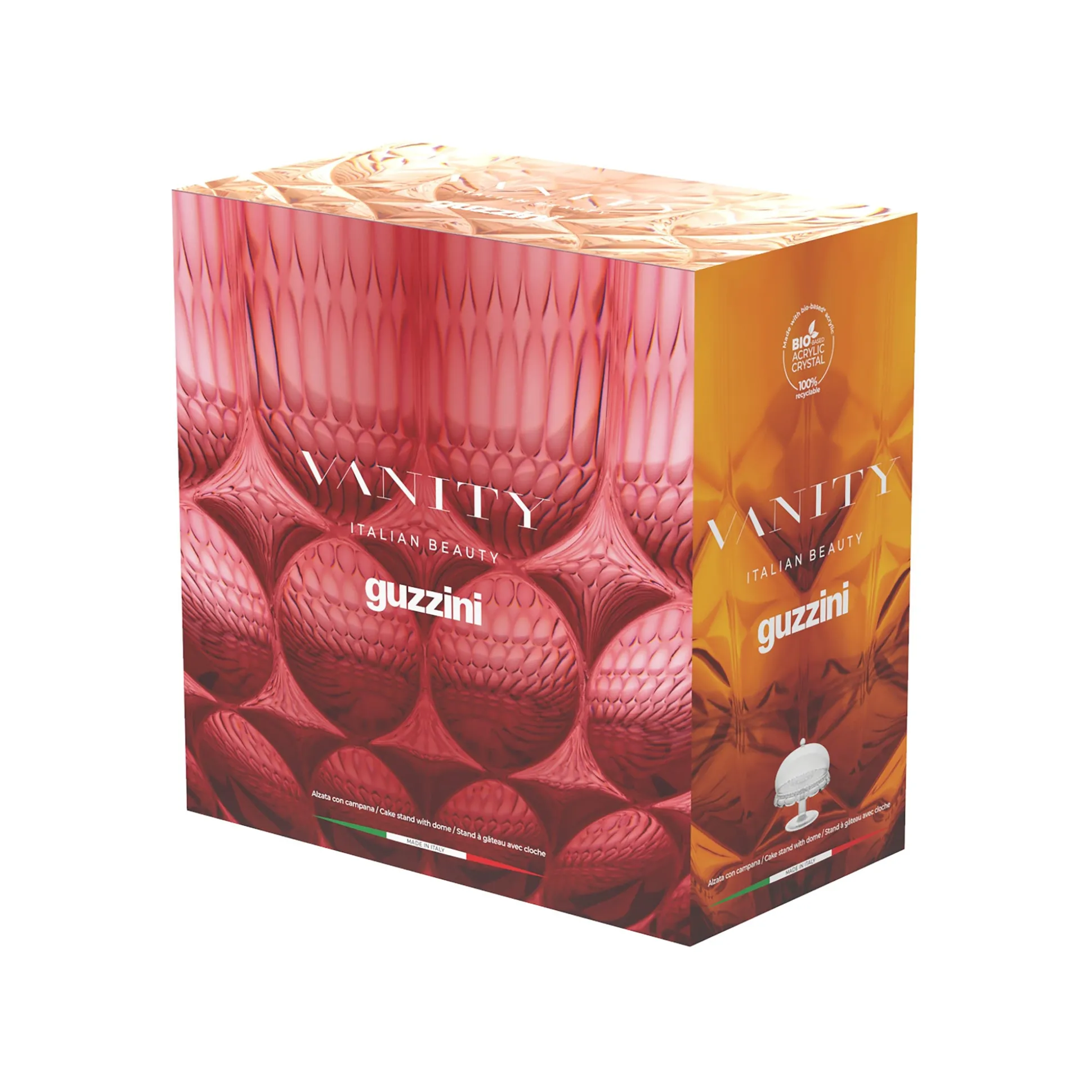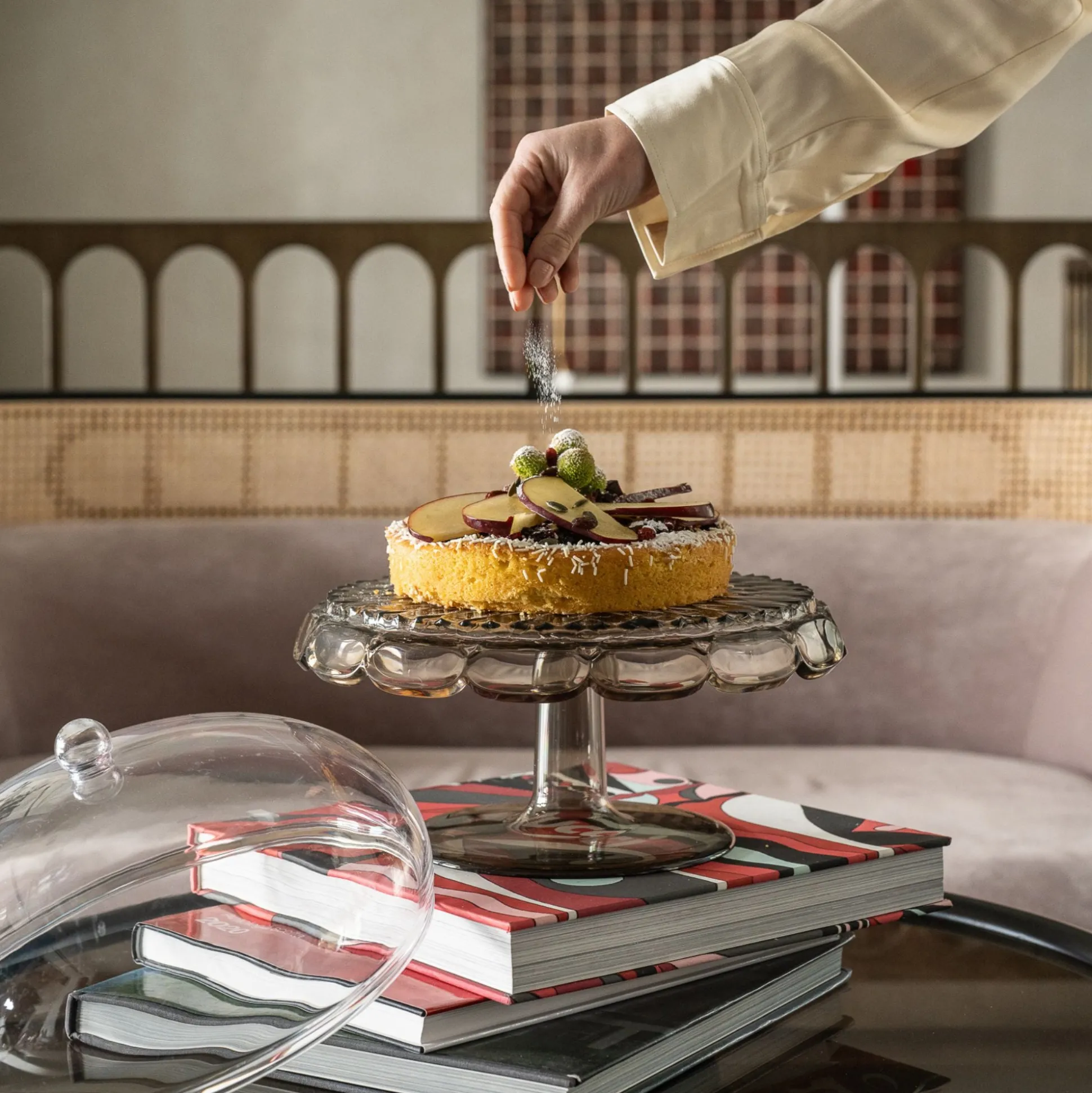 Alzata con campana realizzata nello speciale Cristallo Acrilico Bio-based* di origine biologica, un materiale organico rinnovabile, moderno e non fossile ricavato da scarti vegetali e 100% riciclabile.