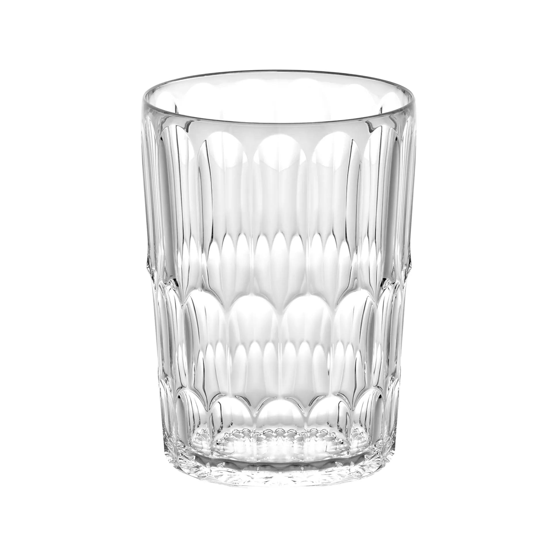 Bicchiere alto realizzato nello speciale Cristallo Acrilico Bio-based* di origine biologica, un materiale organico rinnovabile, moderno e non fossile ricavato da scarti vegetali e 100% riciclabile.