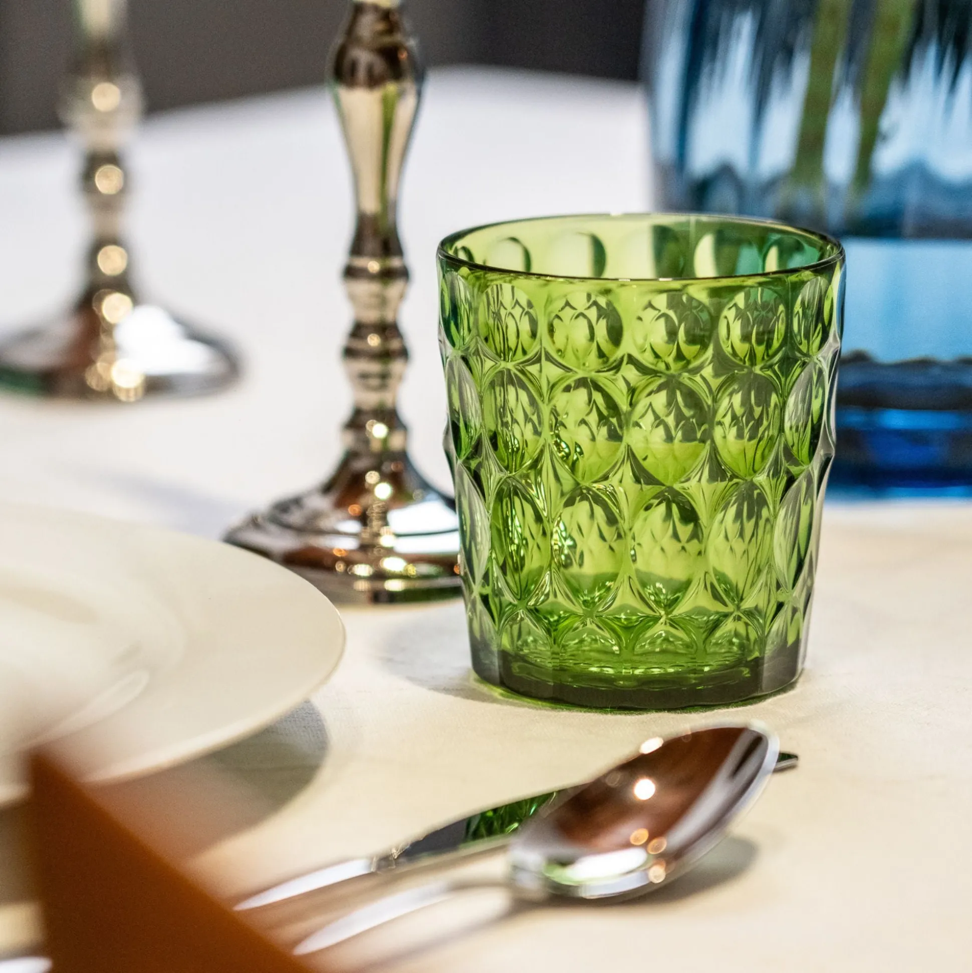 Bicchiere basso realizzato nello speciale Cristallo Acrilico Bio-based* di origine biologica, un materiale organico rinnovabile, moderno e non fossile ricavato da scarti vegetali e 100% riciclabile.