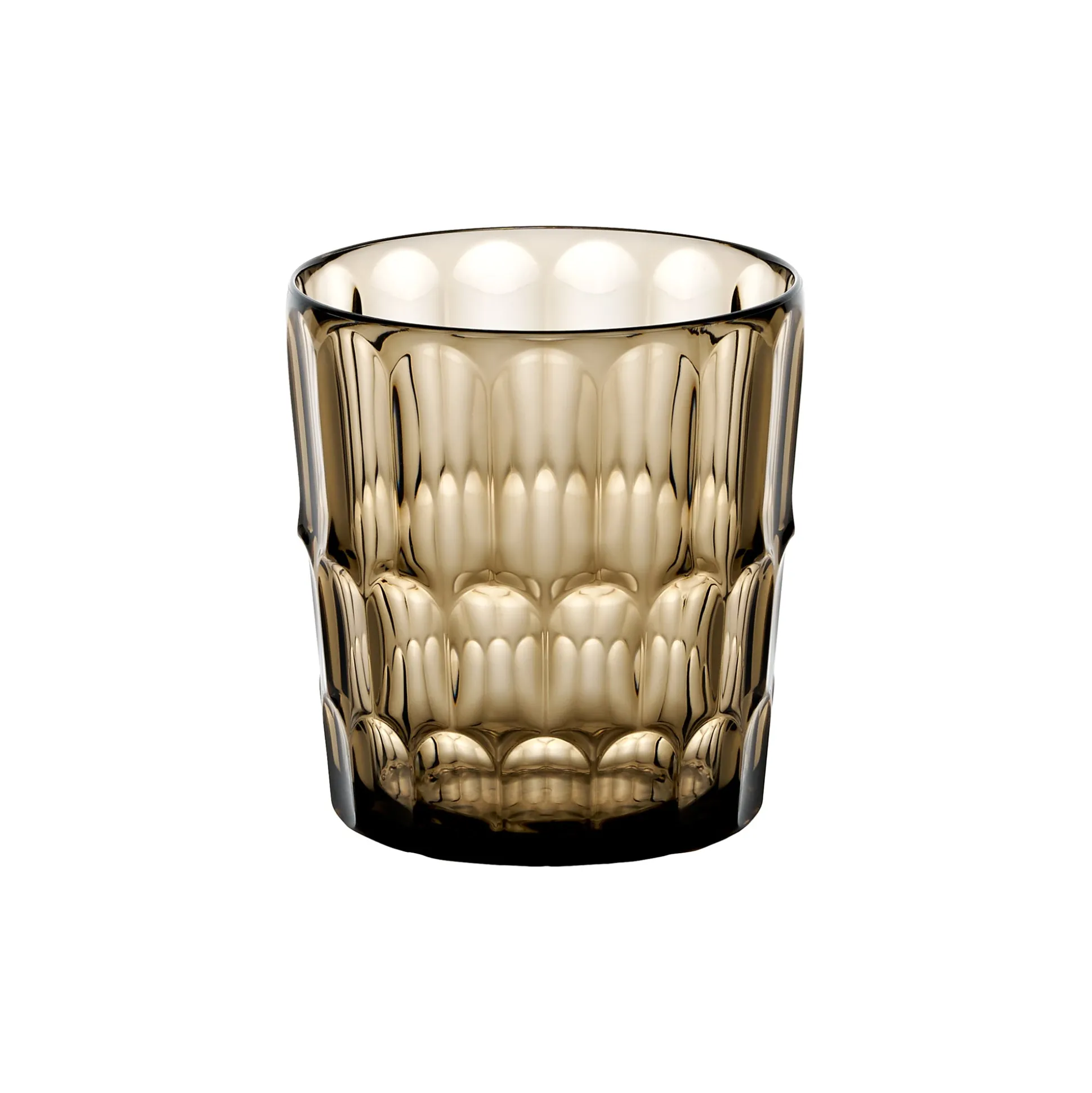 Bicchiere basso realizzato nello speciale Cristallo Acrilico Bio-based* di origine biologica, un materiale organico rinnovabile, moderno e non fossile ricavato da scarti vegetali e 100% riciclabile.