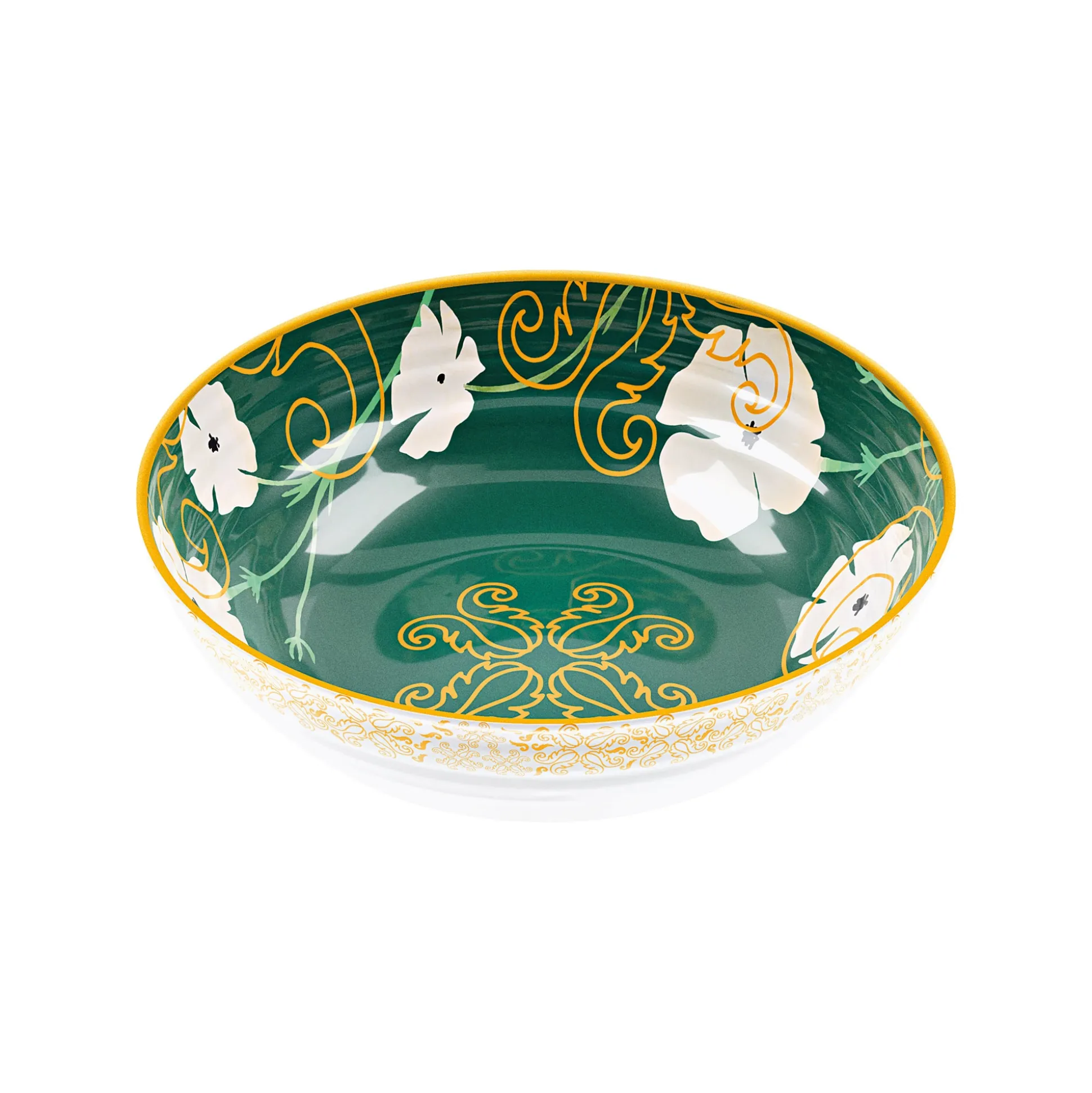 I contenitori in melamina ‘’Fusion’’ offrono un’originale combinazione di colori e stili. Il verde intenso abbinato al bianco dei fiori e all’oro dei segni grafici conferiscono un aspetto elegante, adatto ad ogni stagione e ad ogni occasione.