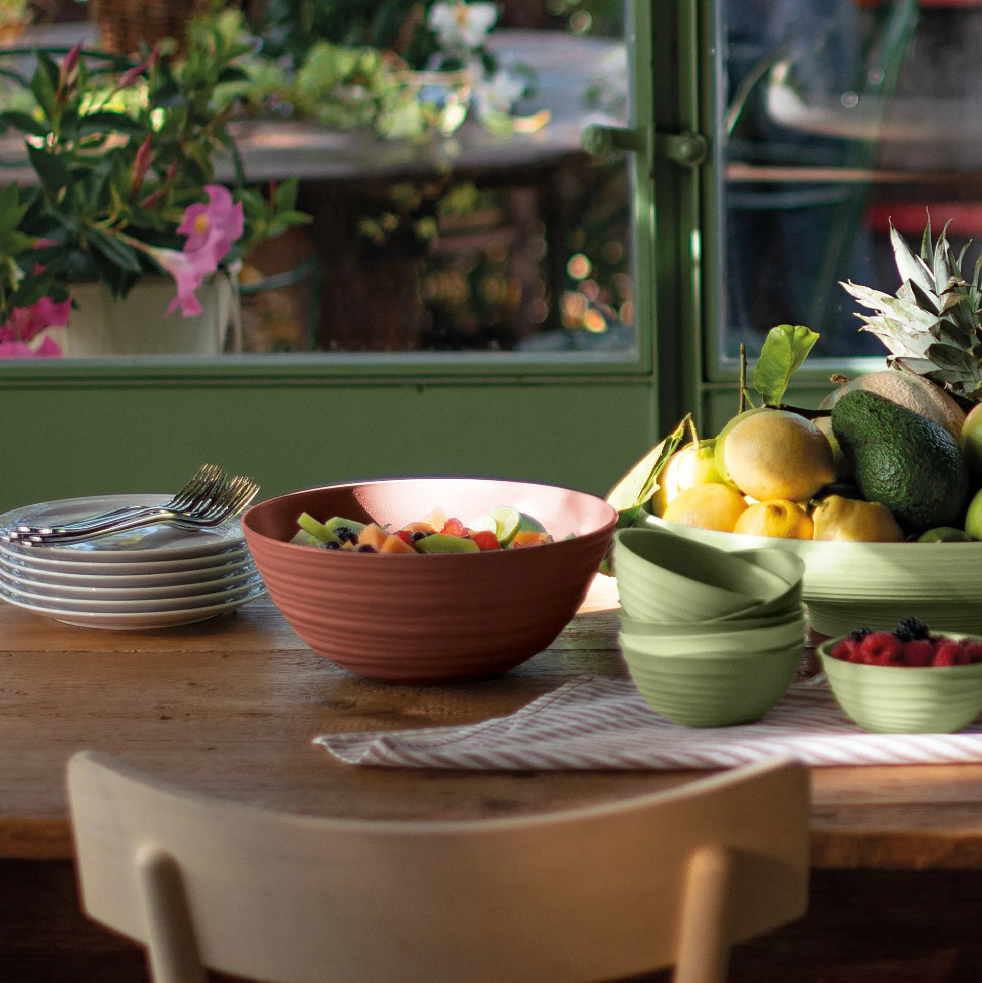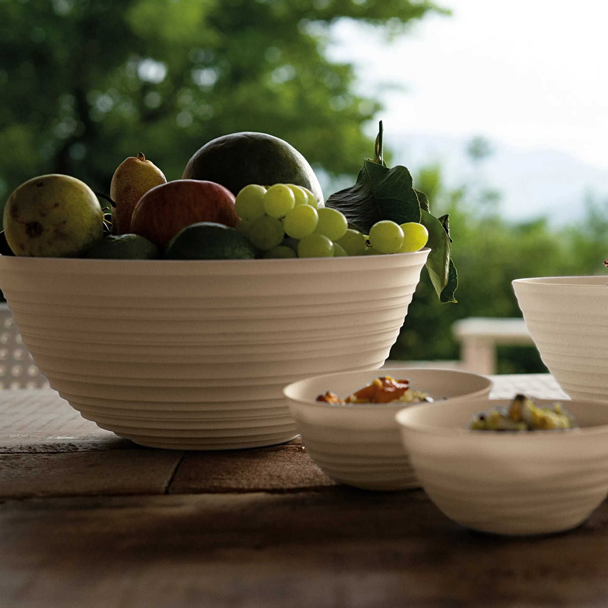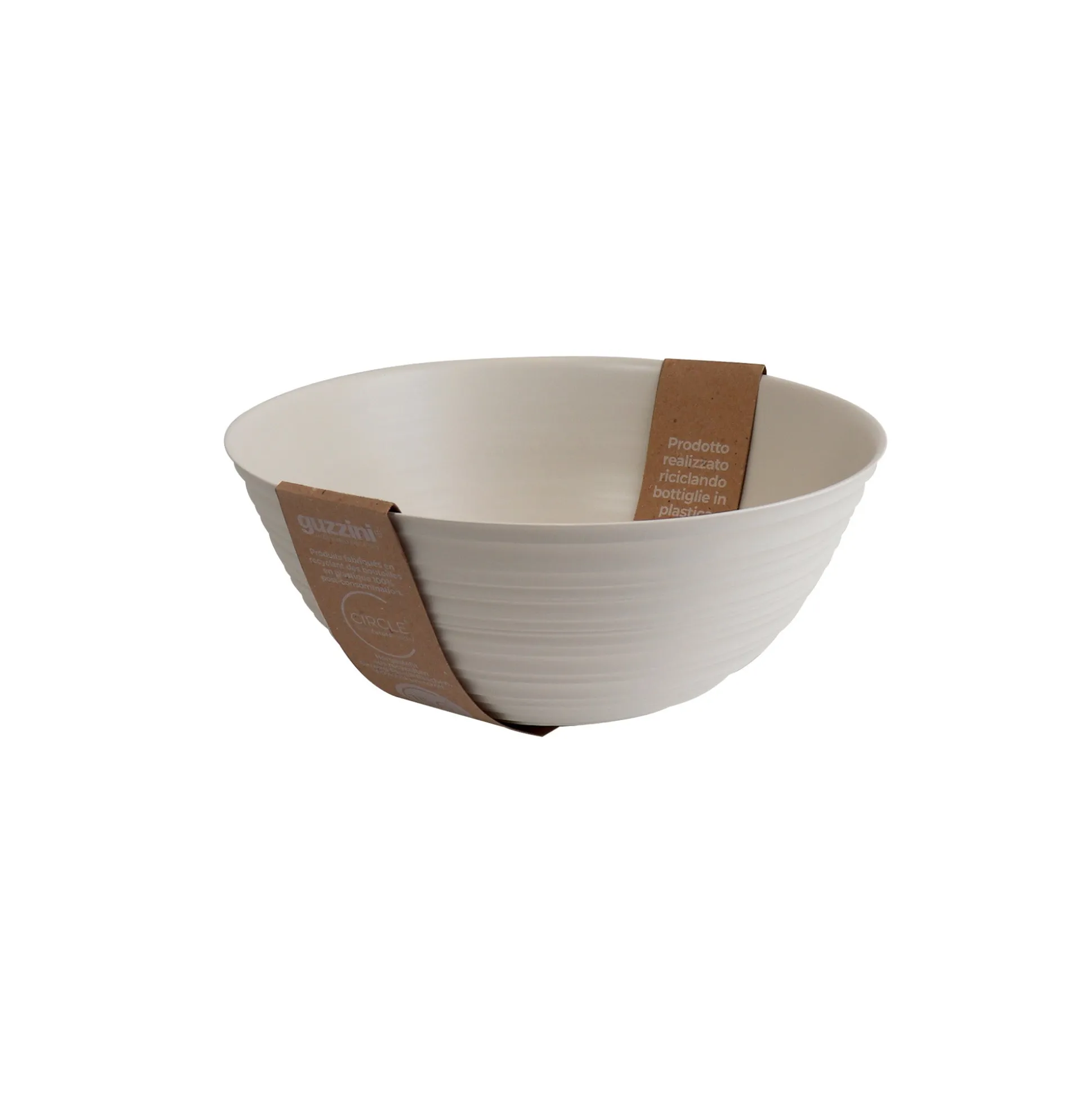 Contenitore della collezione Tierra, interamente realizzata riciclando 15,6 bottiglie d’acqua in PET da post consumo, simbolo di una rivoluzione in tema di materialità e di stile. La circolarità del segno grafico, volutamente irregolare, conferisce un aspetto handmade.