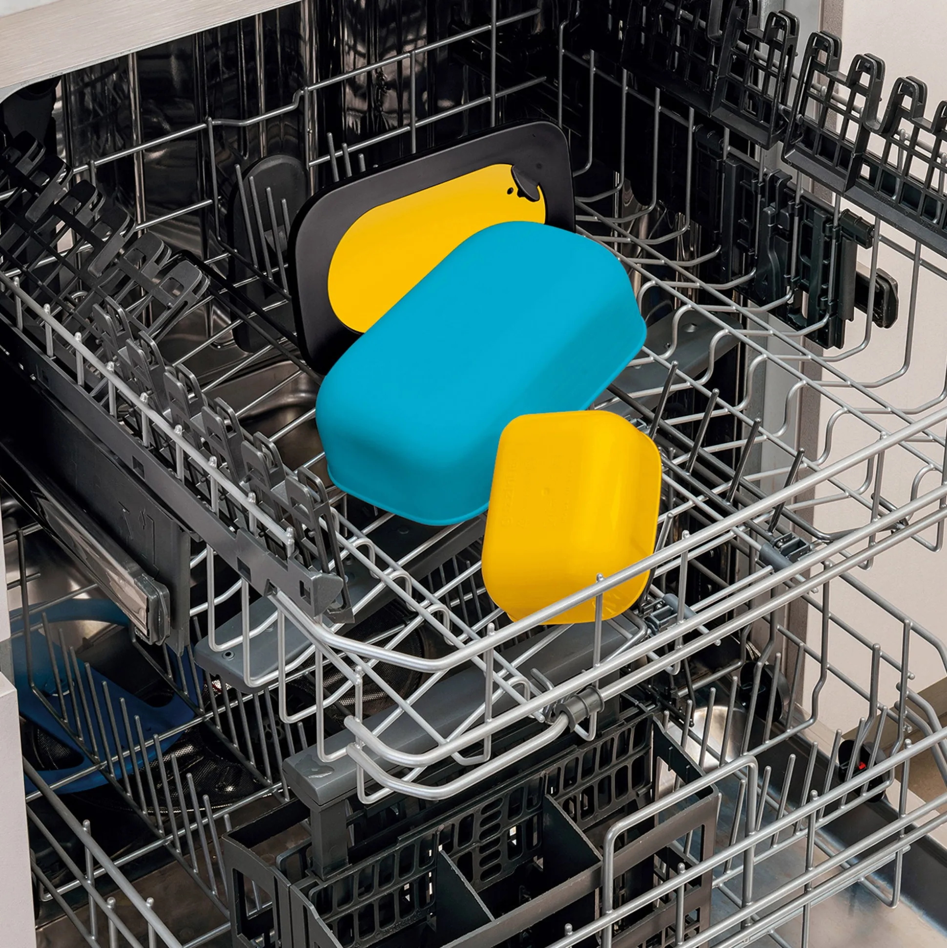 Lunch box con contenitore interno ideale per trasportare e servire cibo fuori casa. Decisamente pratico, utilizzabile in microonde con coperchio, lavabile in lavastoviglie e sicuro grazie al coperchio ermetico a doppia chiusura. Può contenere fino a 900 ml.