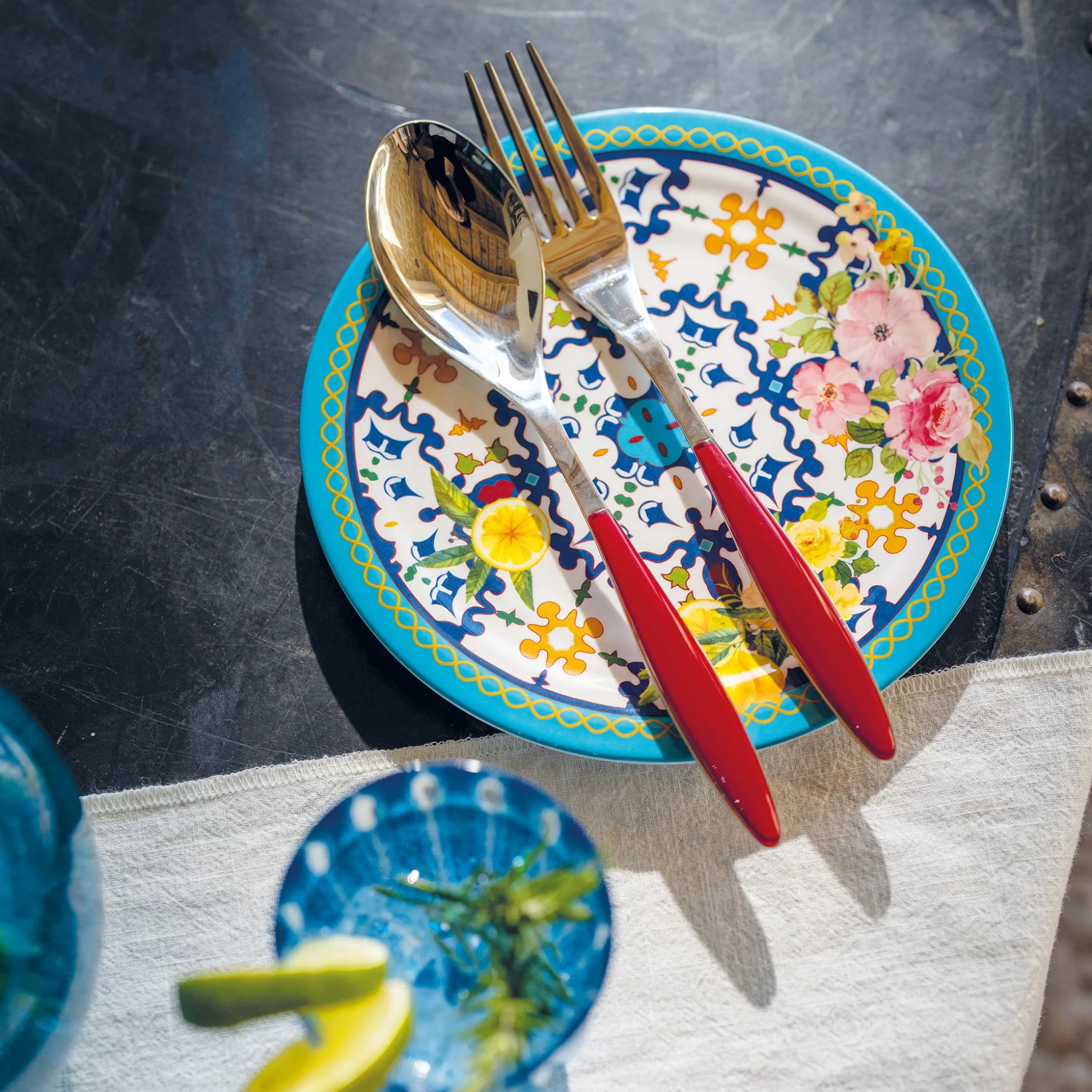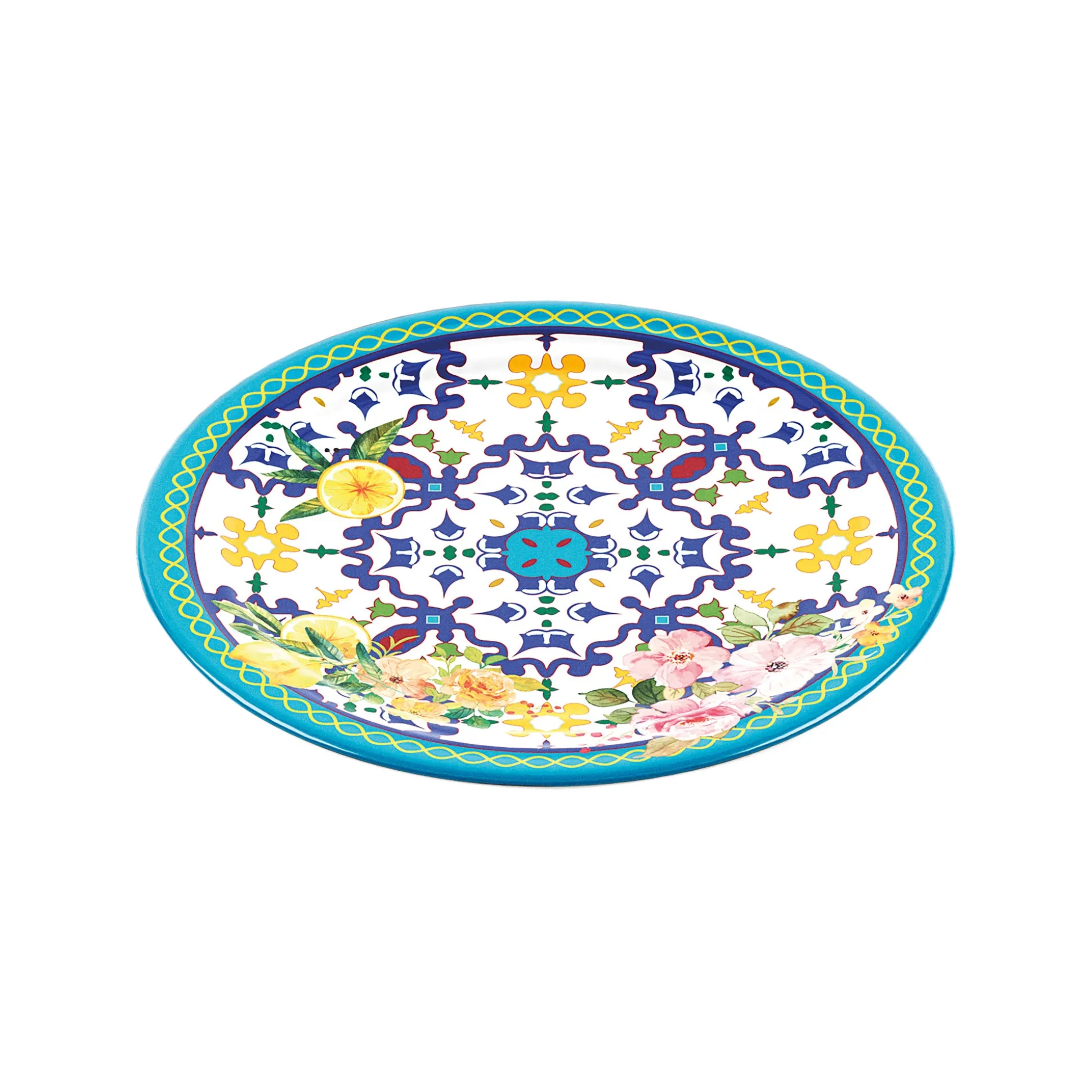 I piatti in melamina ‘’Flower&Lemon’’ evocano i profumi e i colori dei fiori primaverili e dei limoni, regalando alla tavola un tocco di freschezza e allegria. Perfetti per una festa all’aperto, un brunch informale o un’occasione speciale.