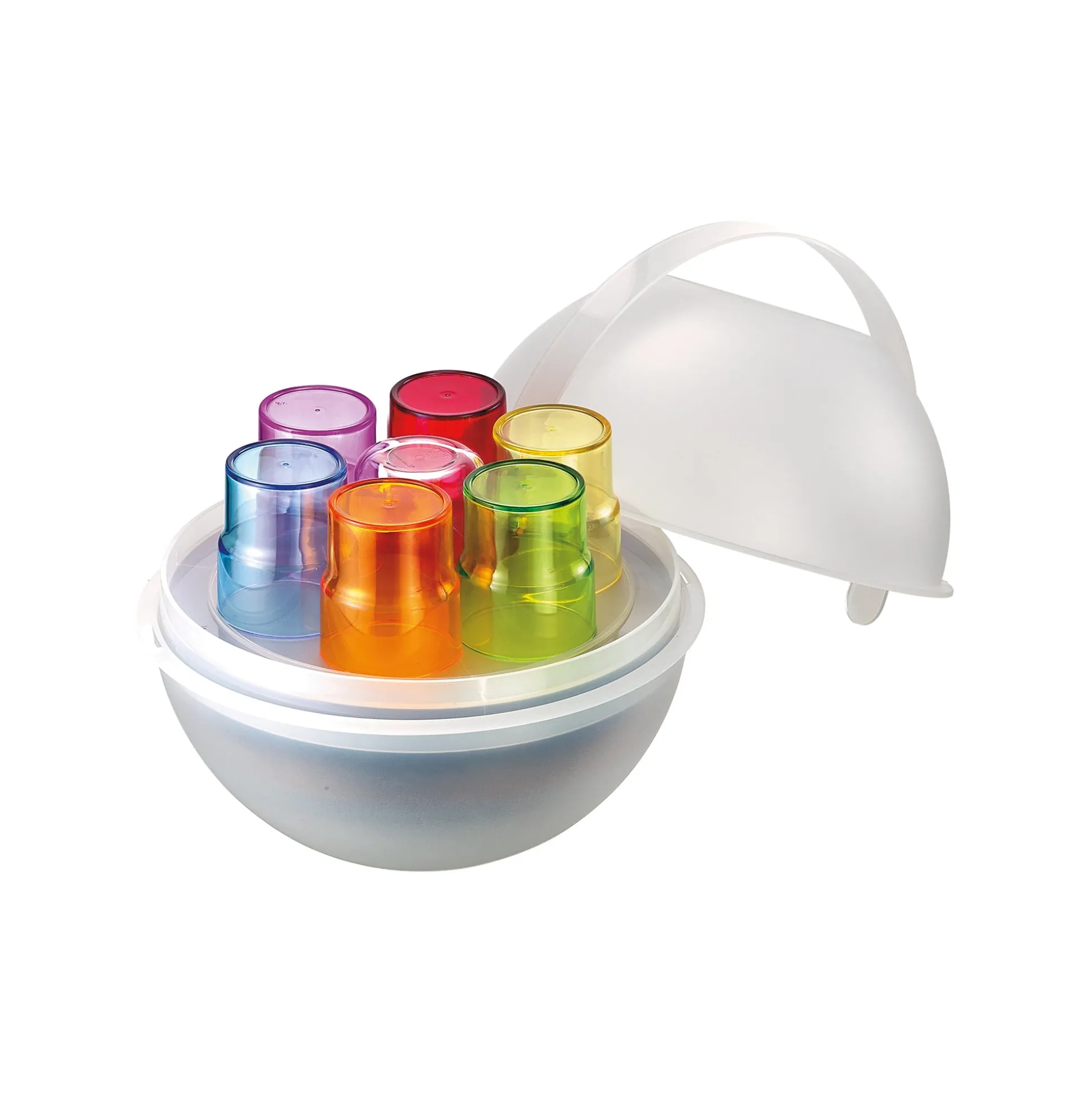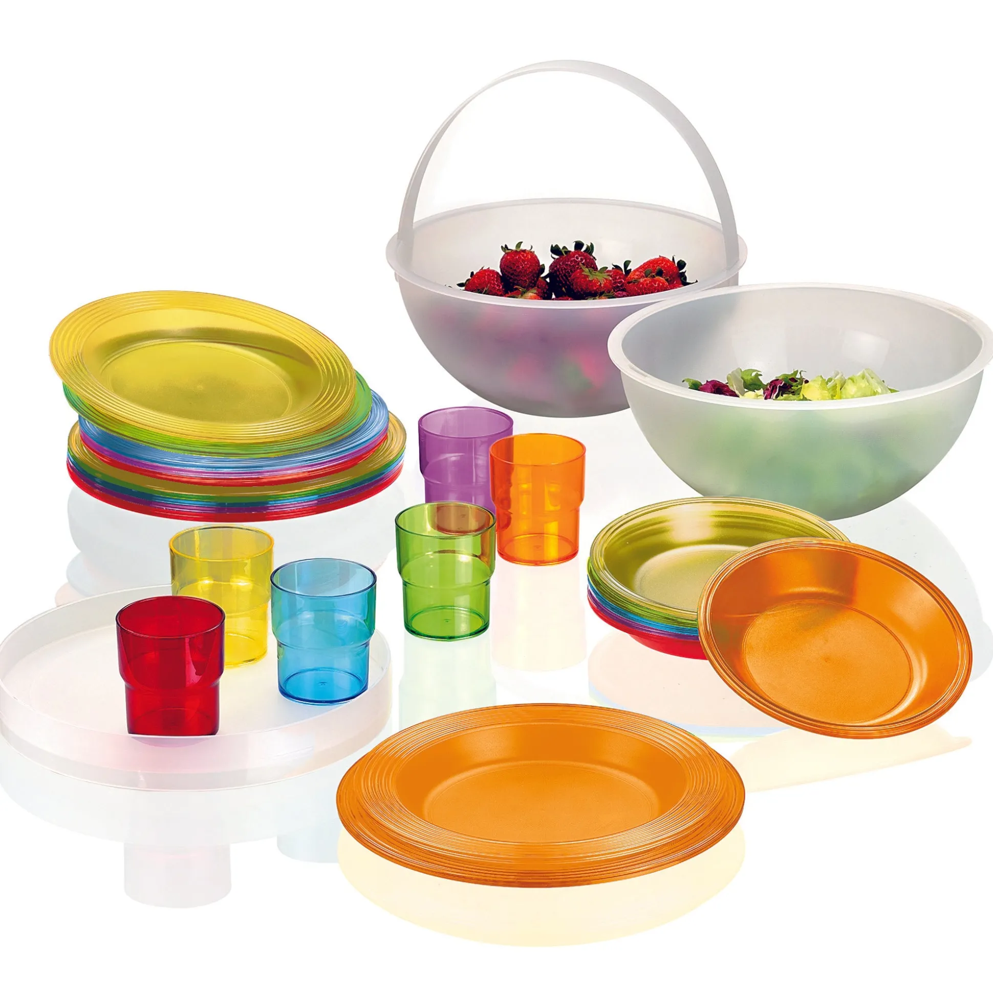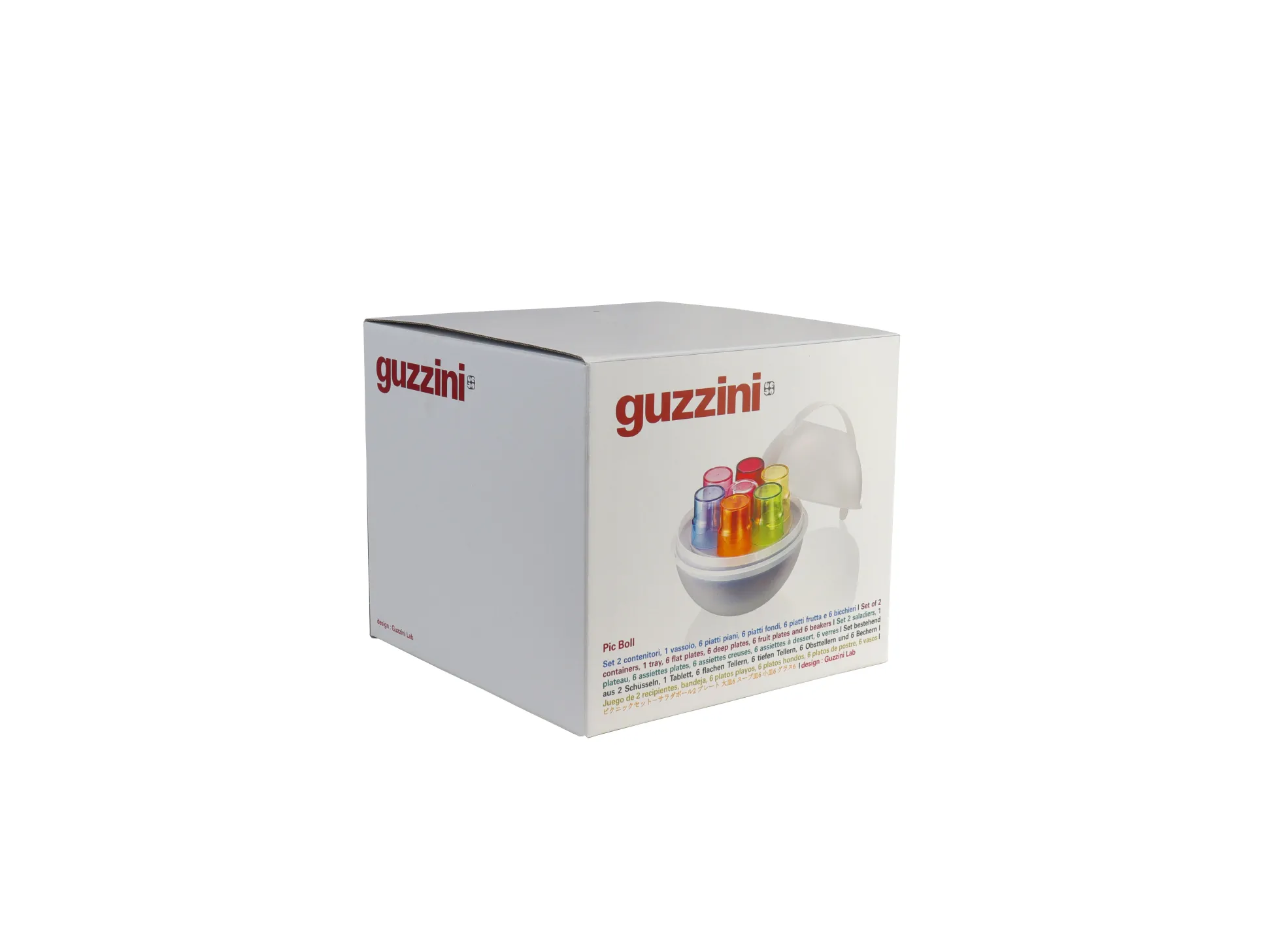 L’originalità, la funzionalità e la brillantezza dei colori caratterizzano il Pic Boll, riedizione di un pezzo storico degli anni settanta. Una sfera che contiene tutto il necessario per allestire un allegro picnic: 2 Contenitori, 1 Vassoio, 6 Piatti piani, 6 Piatti fondi, 6 Piatti frutta, 6 Bicchieri