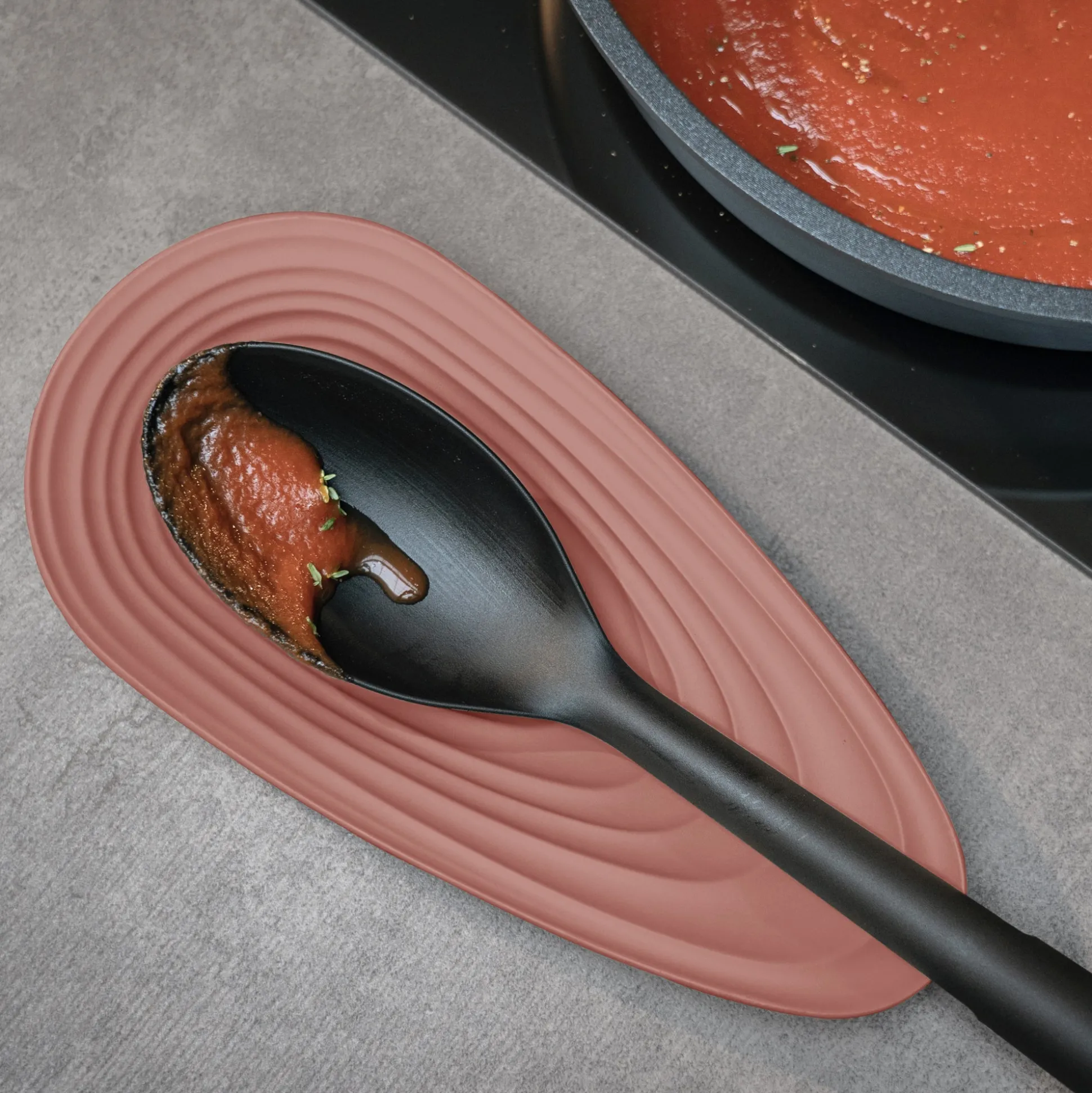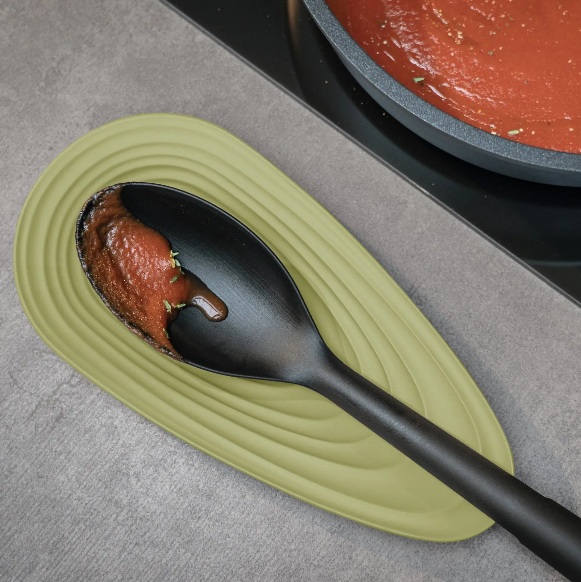 Poggiamestolo realizzato riciclando 5,6 bottiglie d’acqua in plastica usa e getta 100% post consumo, un oggetto piccolo ma indispensabile per evitare di sporcare il top cucina. Dimensionato per accogliere posate e mestoli anche di misure importanti, la sua ampia base garantisce un’eccellente stabilità.