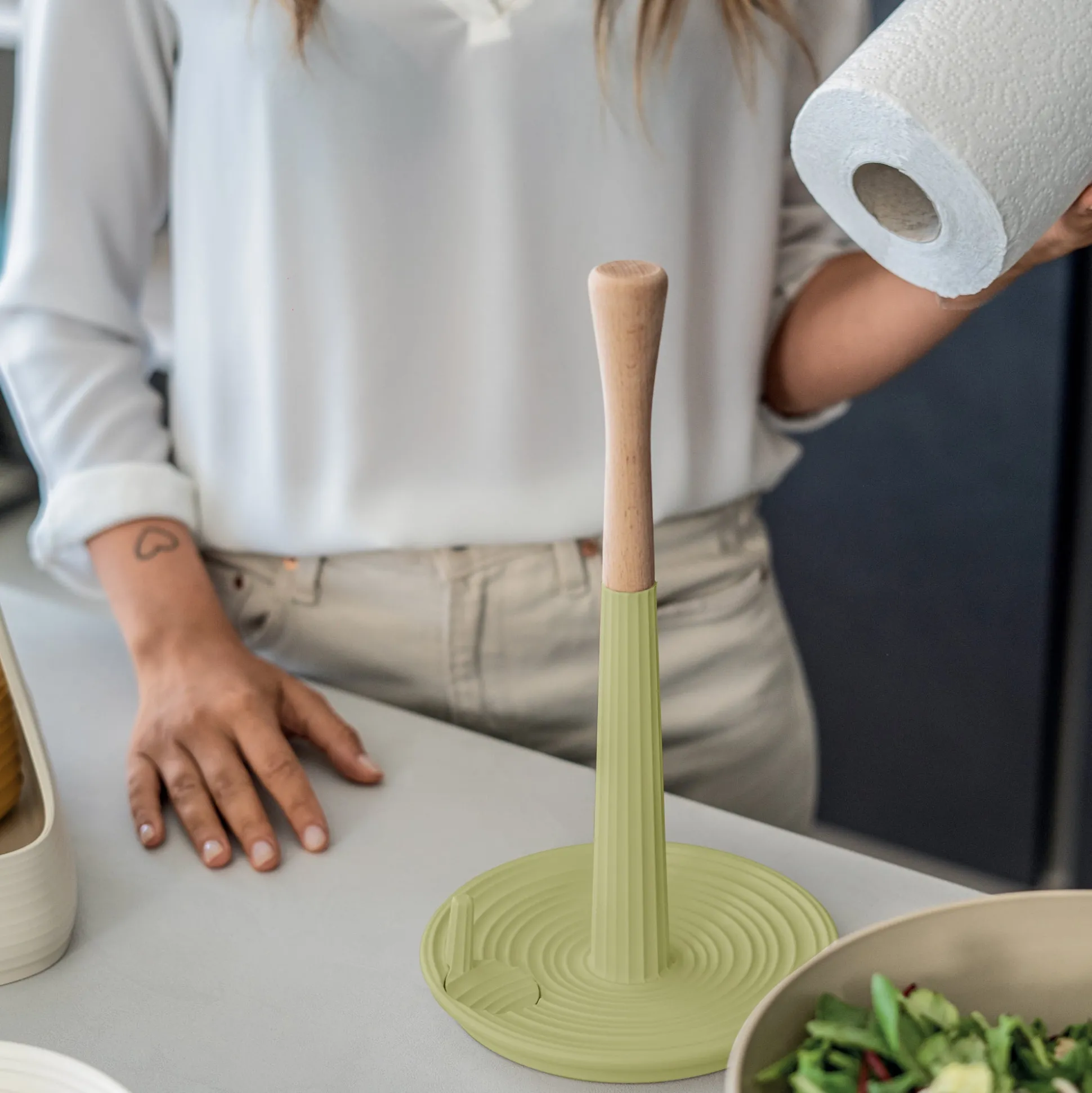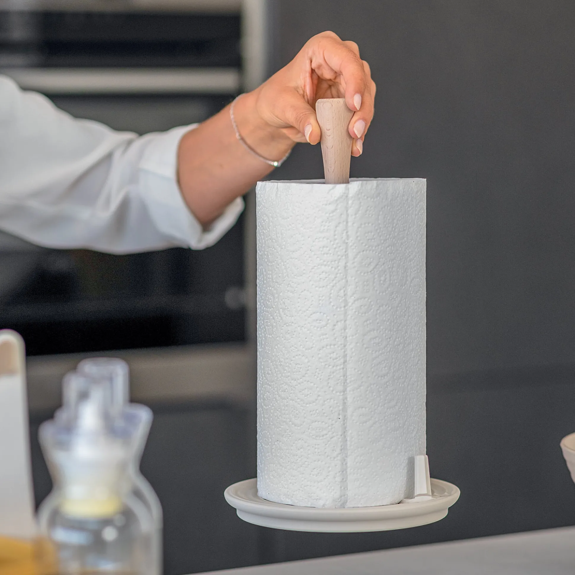 Roll&Tear è un portarotolo universale da cucina con perno ferma foglio realizzato in materiale plastico riciclato post consumo con dettaglio in legno. Roll&Tear è realizzato in uno speciale materiale antibatterico che crea una barriera protettiva sulla superficie del prodotto riducendo drasticamente la proliferazione batterica. Inoltre, è dotato di un perno ferma foglio regolabile e dunque adattabile al diametro del rotolo che garantisce uno strappo sicuro e impedisce al rotolo stesso di srotolarsi da solo. Facile da ricaricare, pratico, rapido e comodamente trasportabile, è ideale per rotoli di carta di diametro e altezze diverse.
