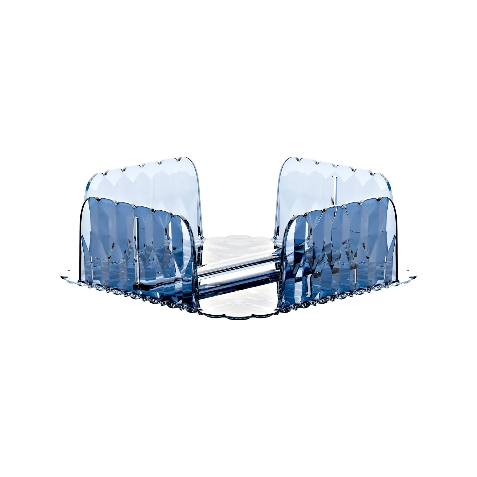 Portatovaglioli orizzontale realizzato nello speciale Cristallo Acrilico Bio-based* di origine biologica, un materiale organico rinnovabile, moderno e non fossile ricavato da scarti vegetali e 100% riciclabile.