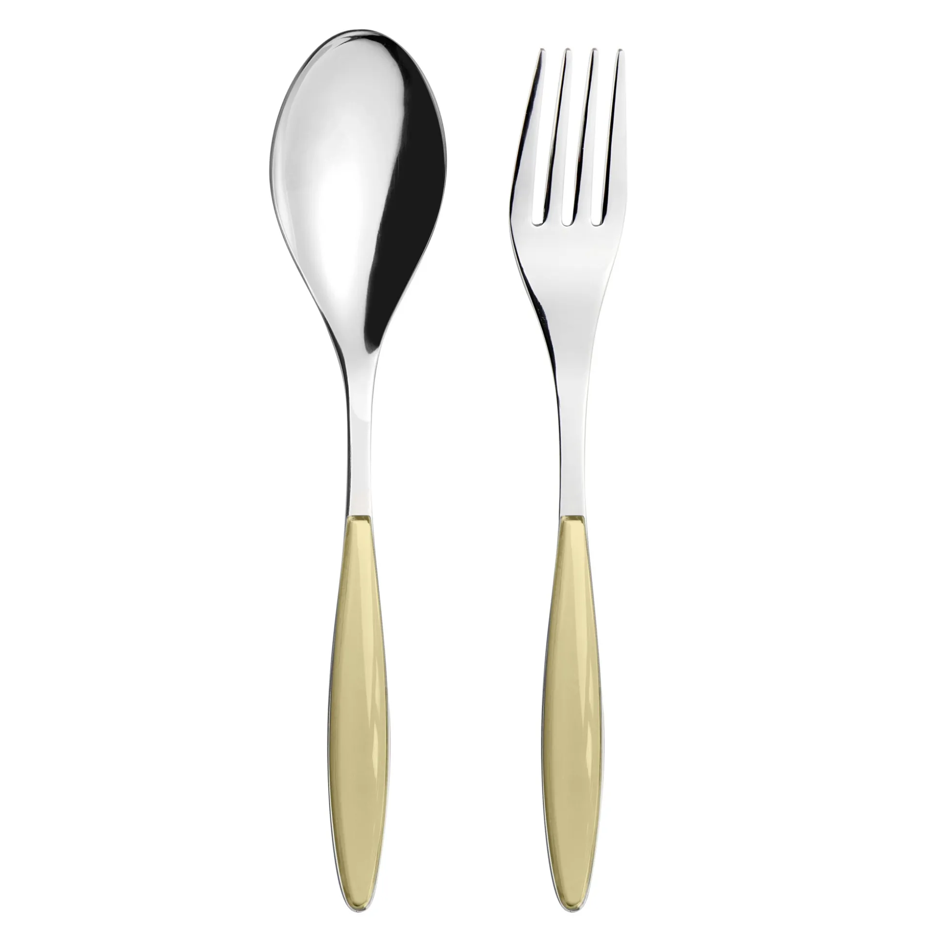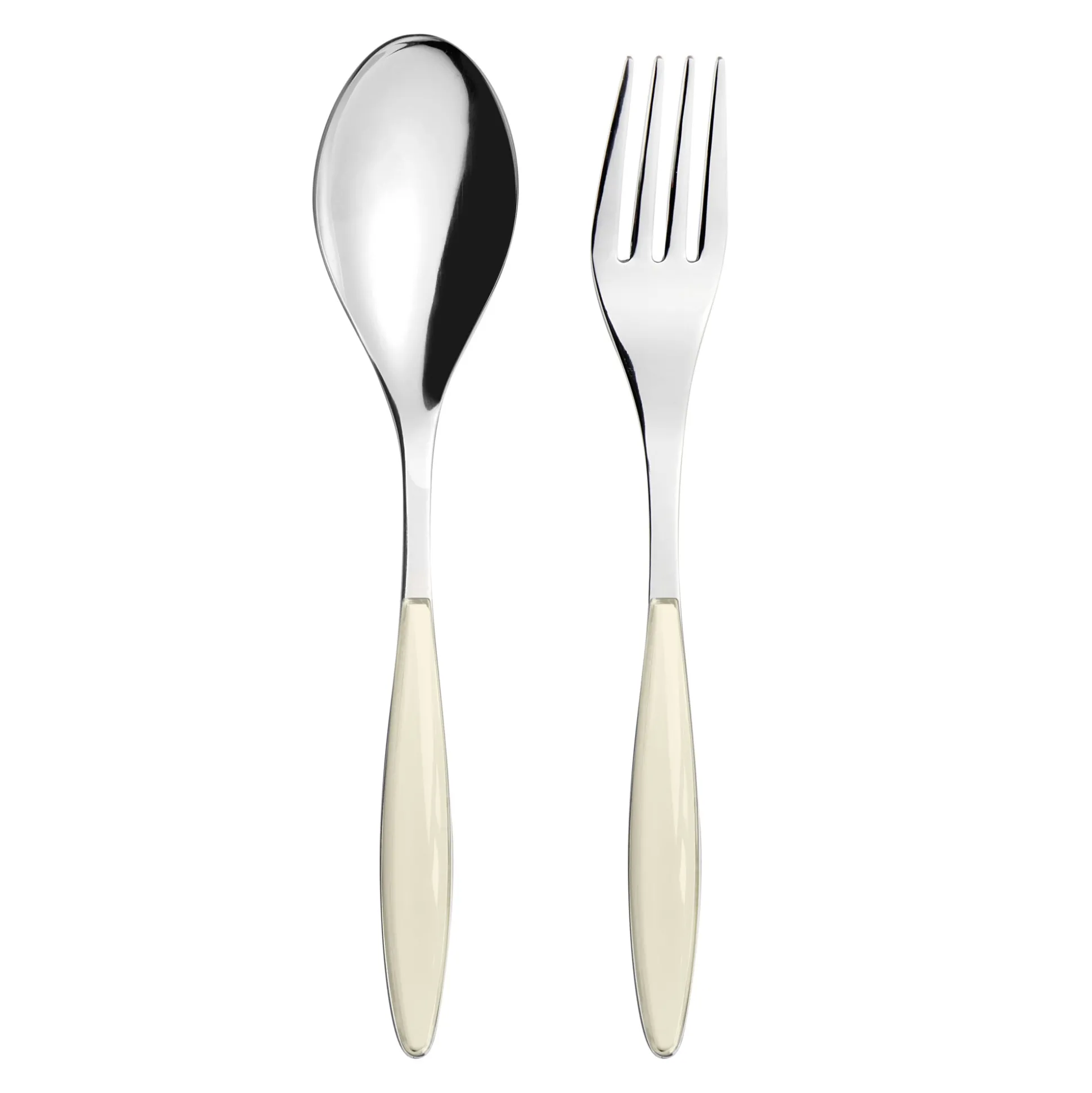Posate a servire realizzate in acciaio inox e manici in materiale plastico di alta qualità, il perfetto connubio di funzionalità e stile per una tavola elegante, colorata e sempre attuale.