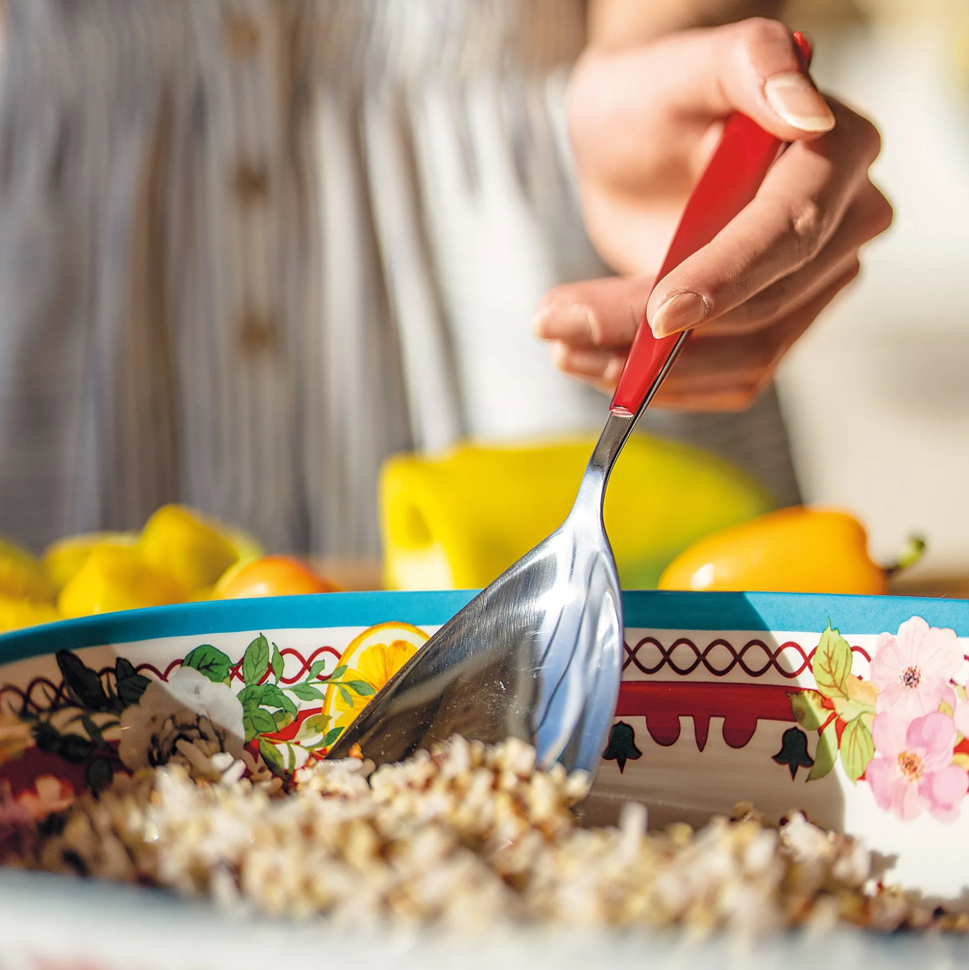 Posate a servire realizzate in acciaio inox e manici in materiale plastico di alta qualità, il perfetto connubio di funzionalità e stile per una tavola elegante, colorata e sempre attuale.