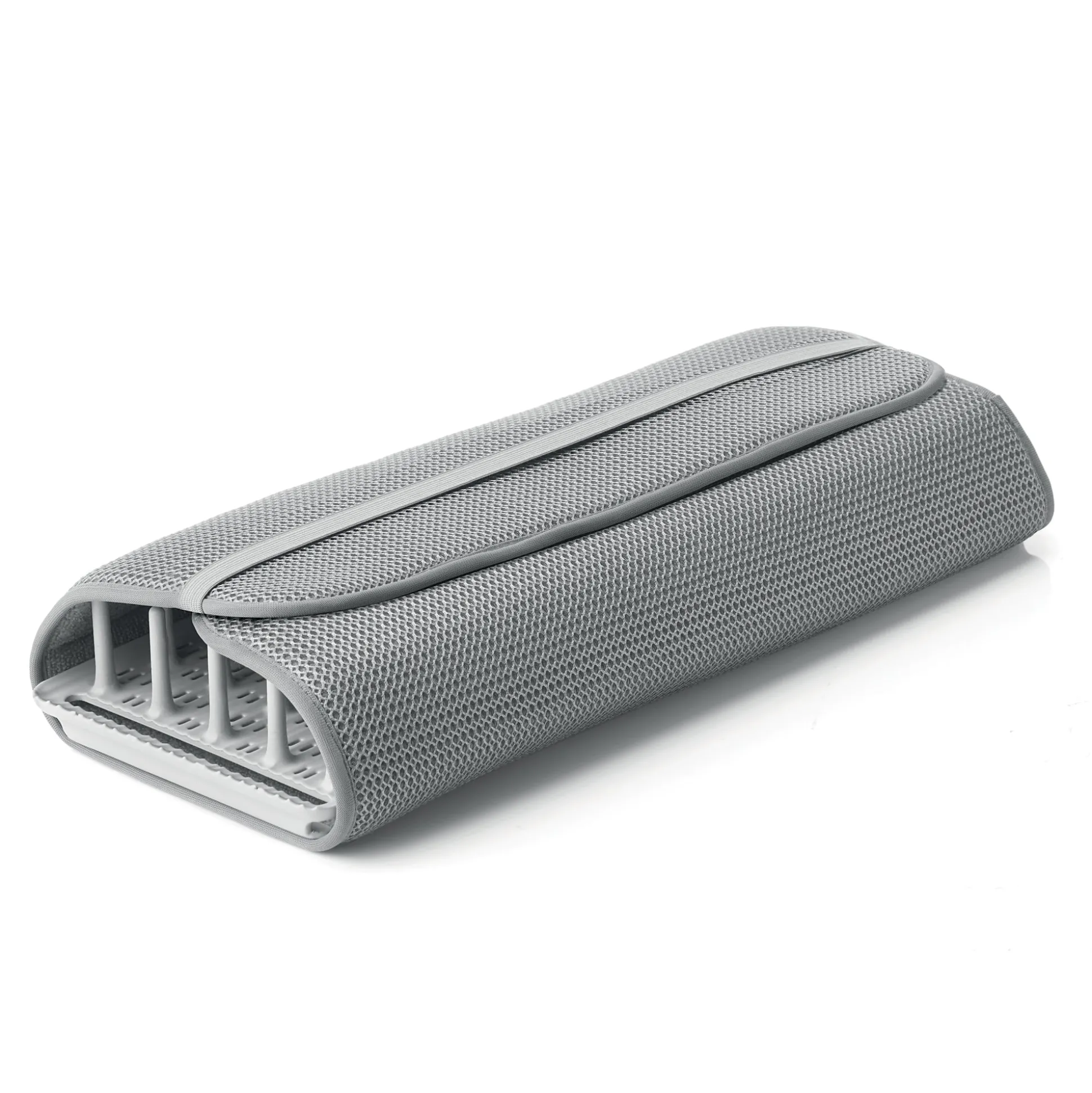 - È salvaspazio poiché basta avvolgere il tappetino intorno allo scolapiatti e fissarlo con la cinghia elastica incorporata per ridurre notevolmente le sue dimensioni e riporlo facilmente in un armadietto o sotto il lavandino.