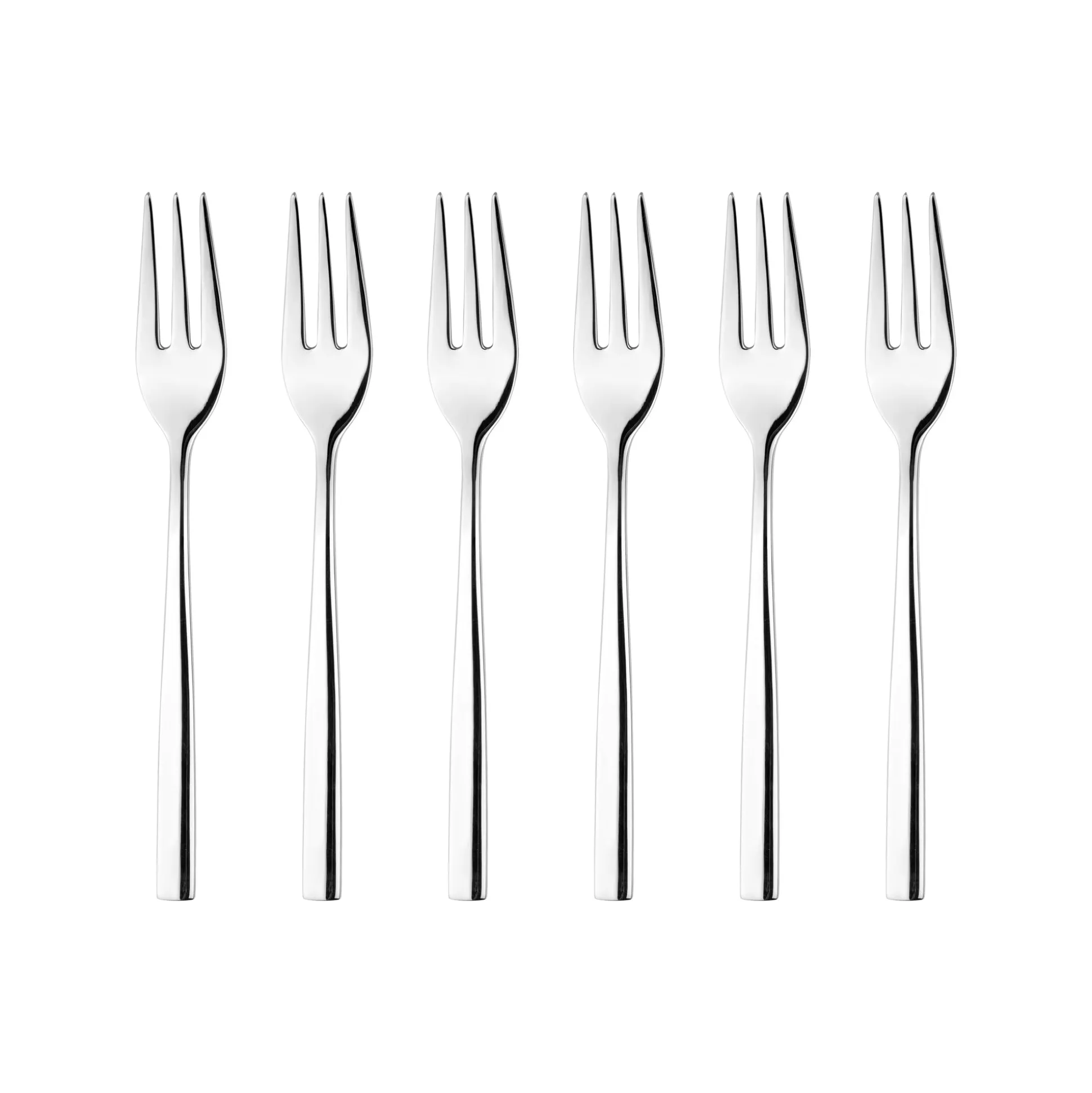 Set di 6 forchettine in acciaio 18/10 perfette per frutta, dessert, antipasti e piccoli piatti, ideali per ogni occasione.