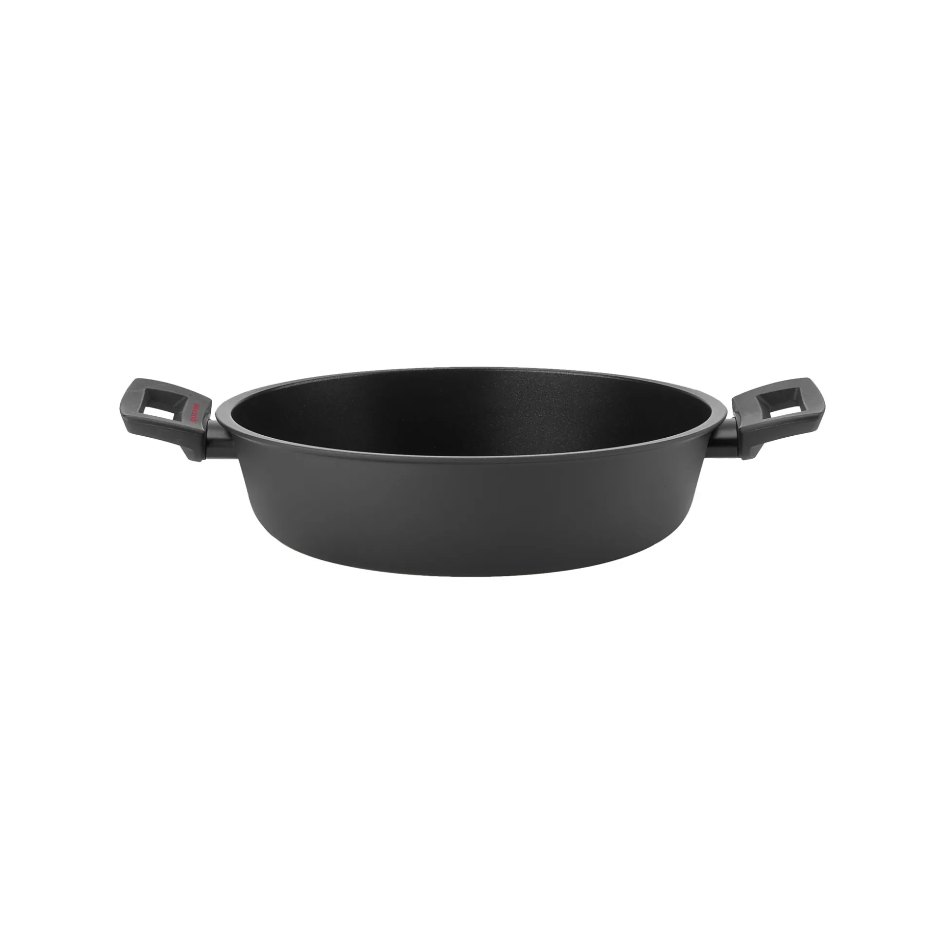 - Il robusto corpo in alluminio sabbiato e ad alto spessore aumenta la durata del tegame e garantisce una distribuzione uniforme del calore ed un’elevata efficienza energetica.