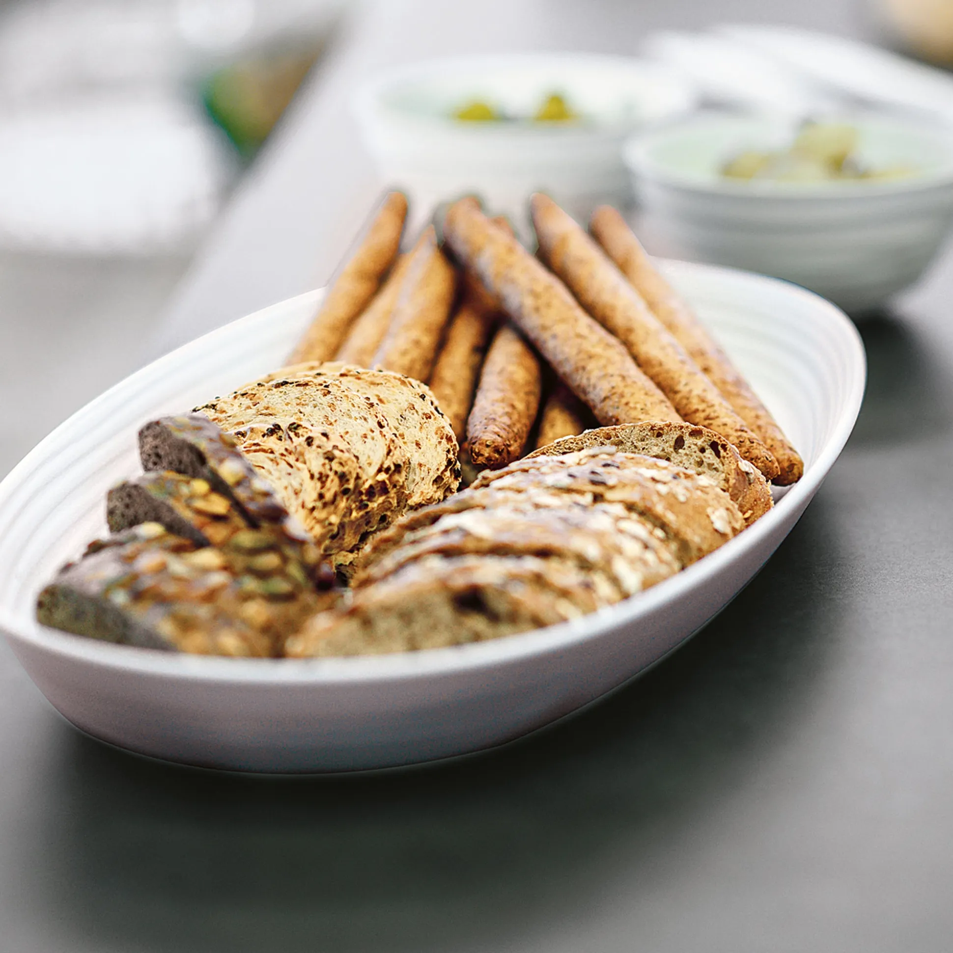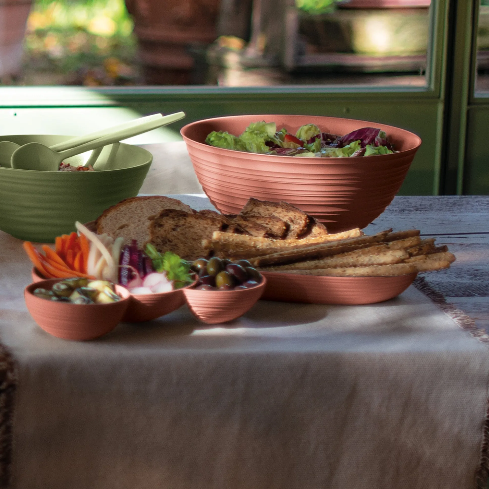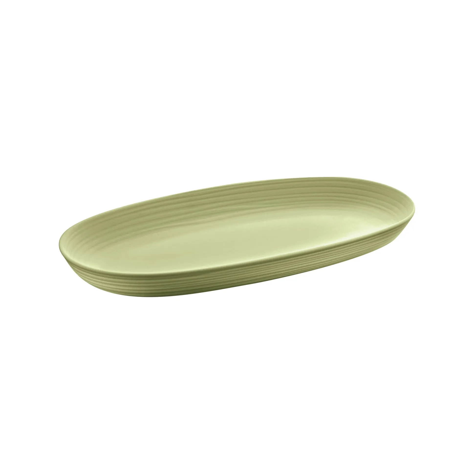 Vassoio da portata della collezione Tierra, interamente realizzato riciclando 13,5 bottiglie d’acqua in PET da post consumo, simbolo di una rivoluzione in tema di materialità e di stile. La circolarità del segno grafico, volutamente irregolare, conferisce un look handmade.