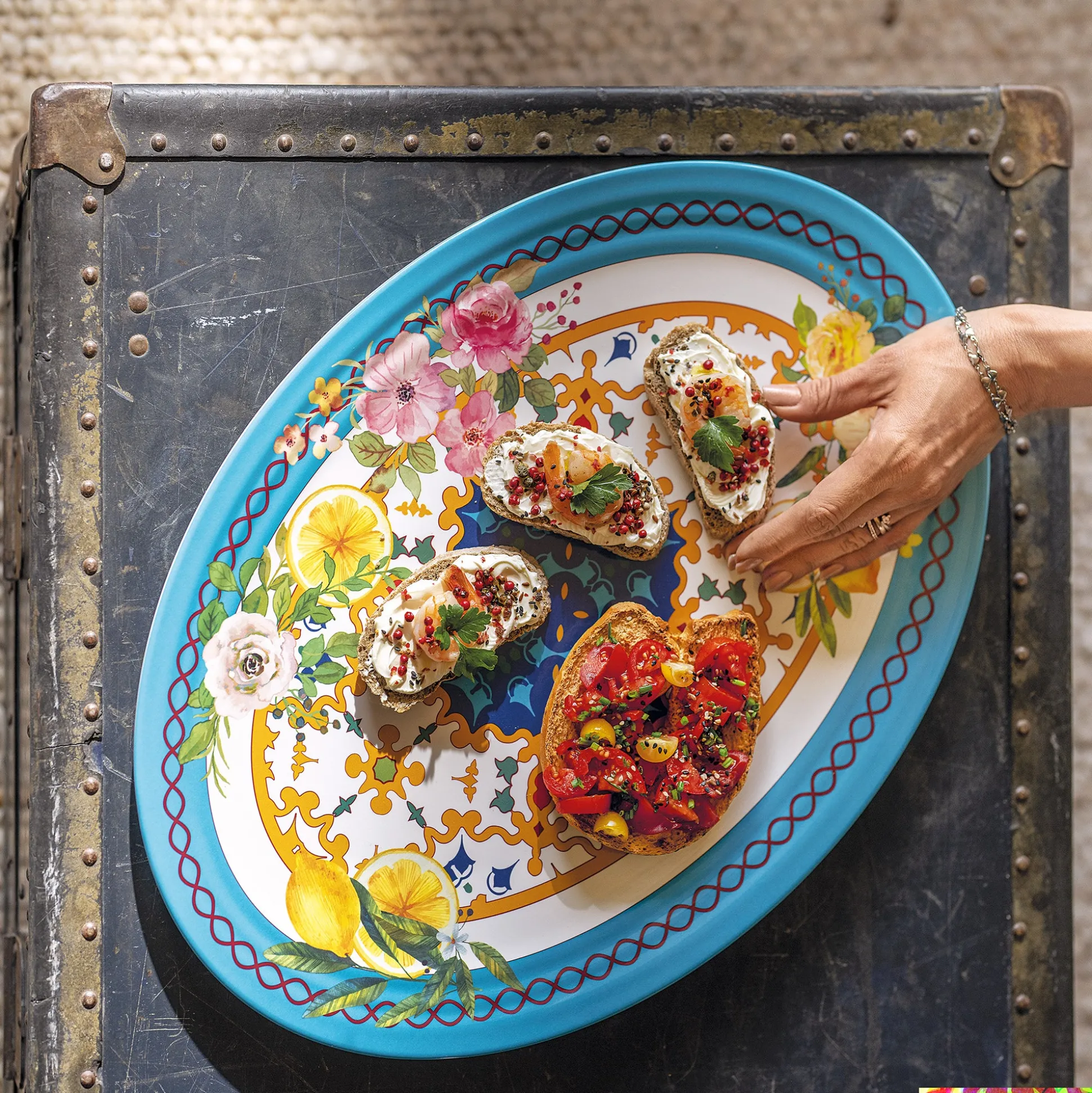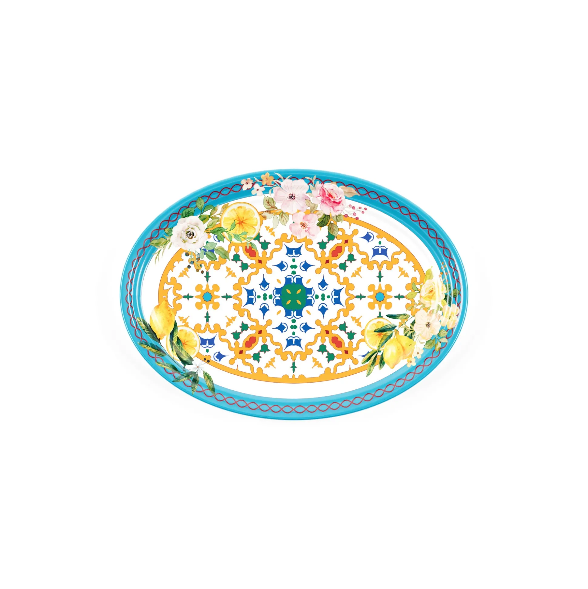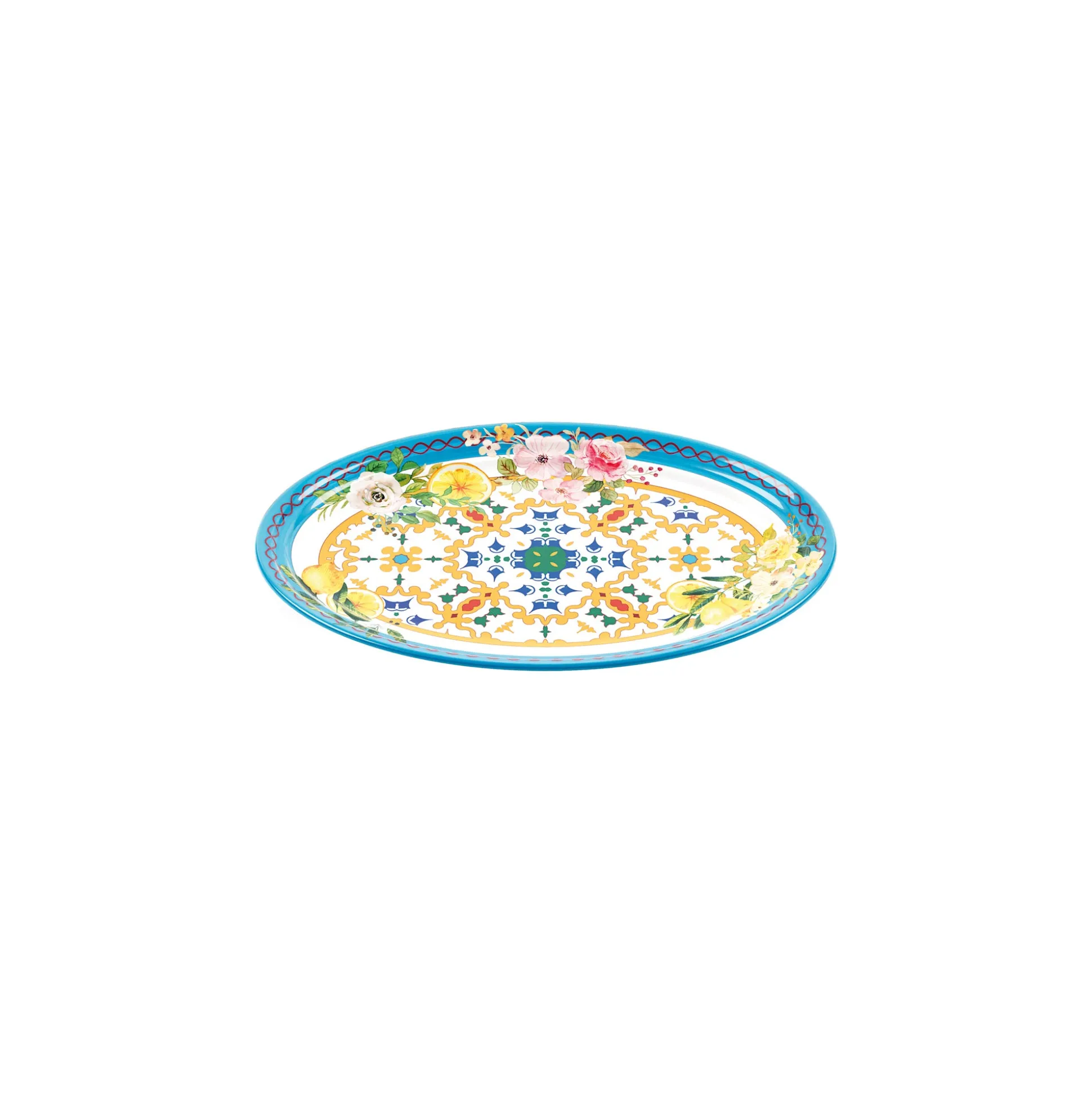 I vassoi in melamina ‘’Flower&Lemon’’ evocano i profumi e i colori dei fiori primaverili e dei limoni, regalando alla tavola un tocco di freschezza e allegria. Perfetti per una festa all’aperto, un brunch informale o un’occasione speciale.