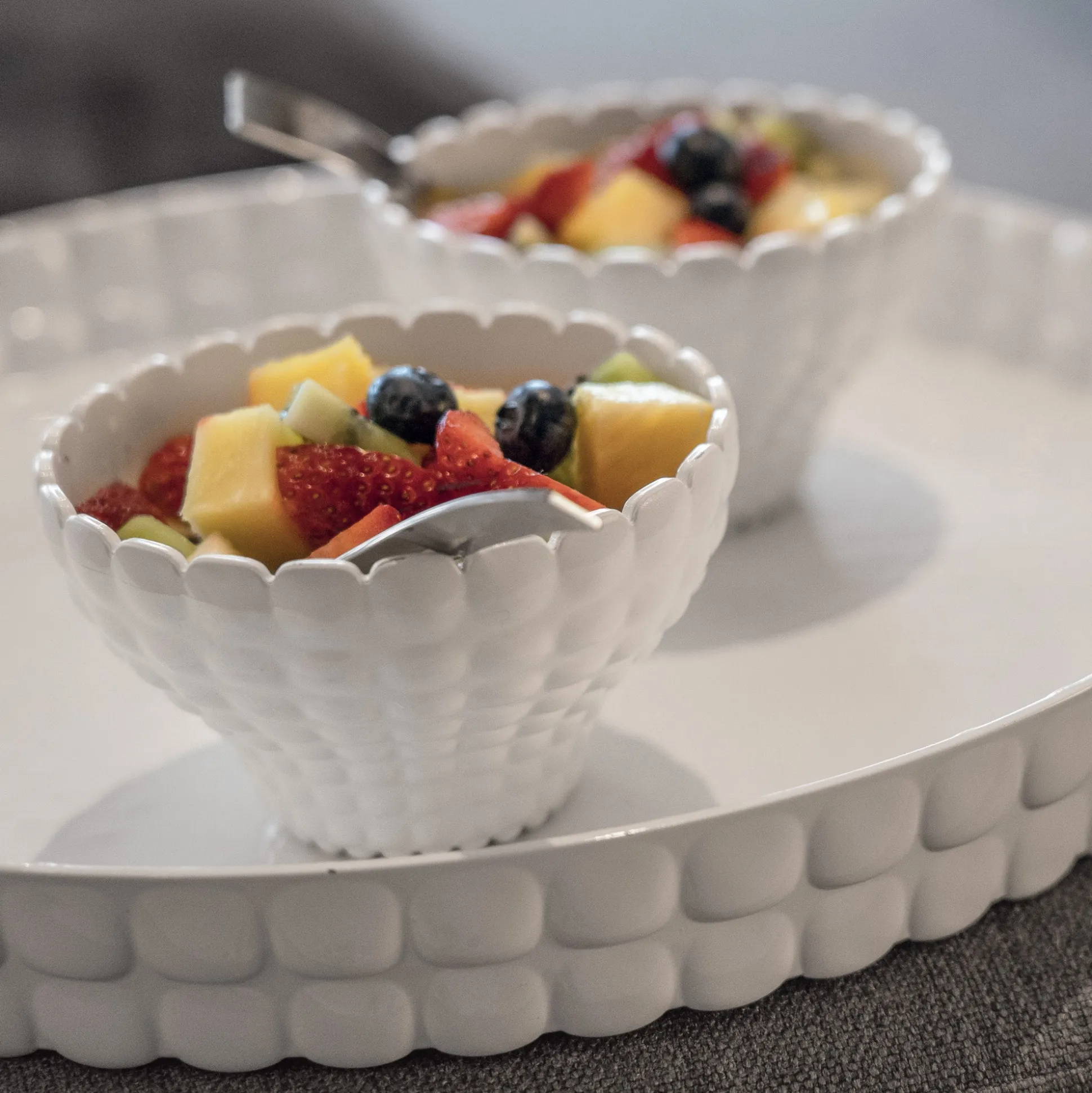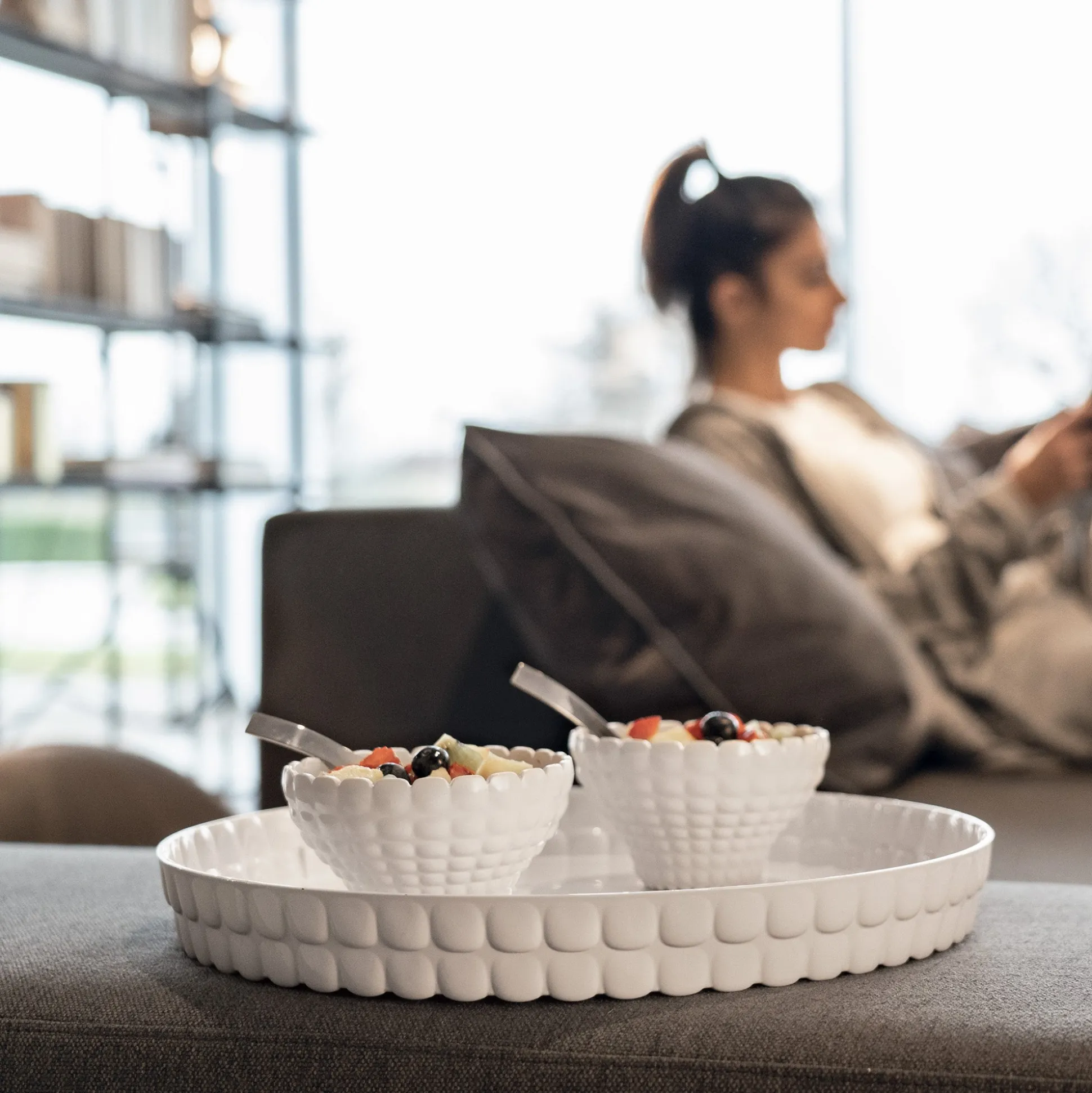 Vassoio circolare in pregiato materiale plastico trasparente e colorato dagli effetti scintillanti. Anche questo pezzo della collezione Tiffany è perfetto per l’outdoor ma anche per impreziosire le tavole più formali.
